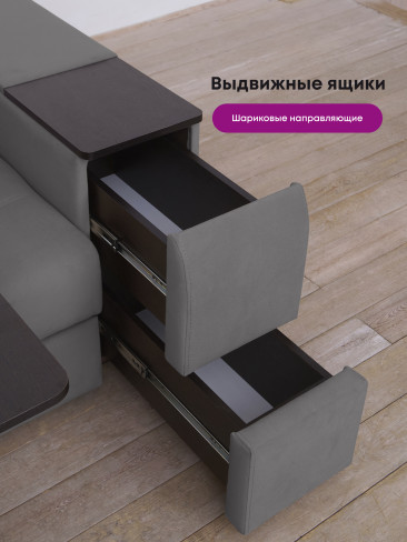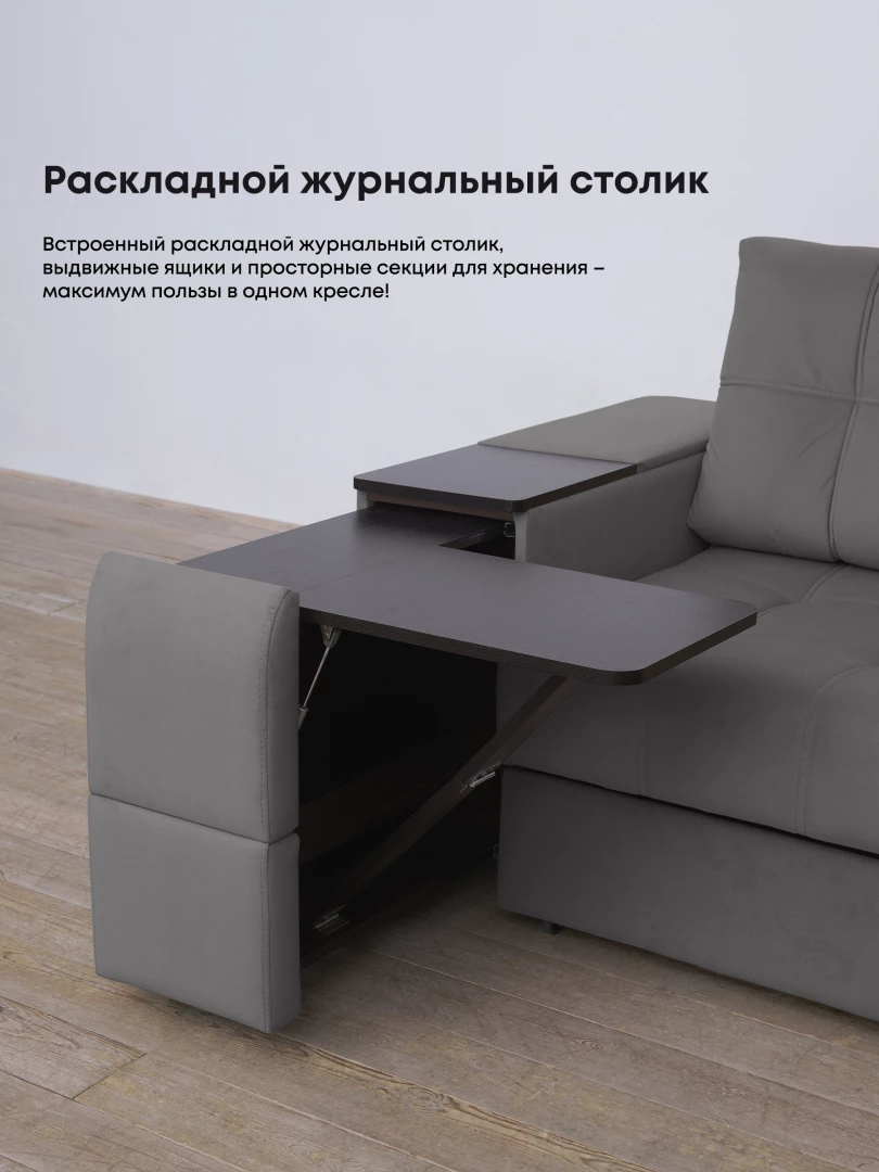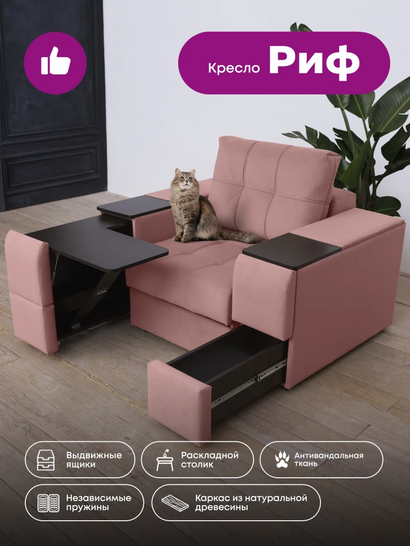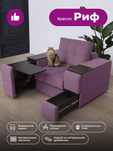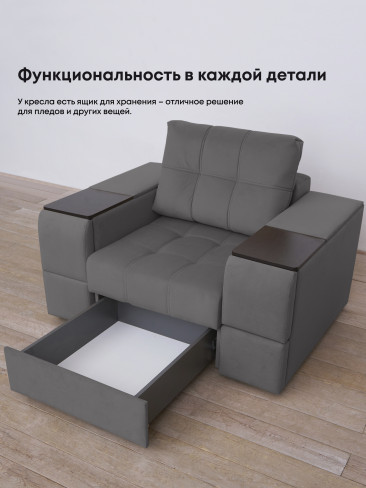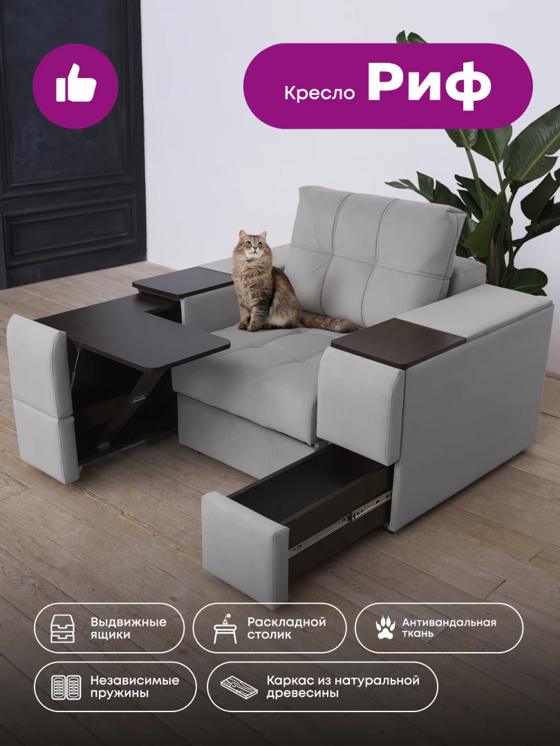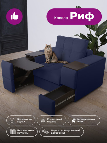 Кресло "РИФ" со встроенным столиком и выдвижными ящиками в ткани Velutto