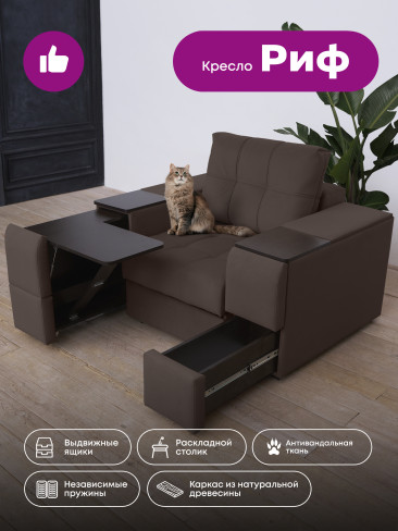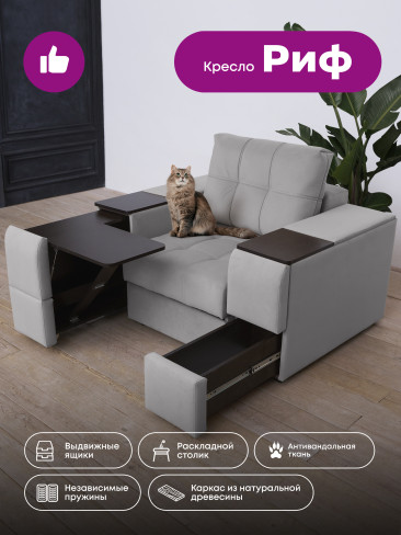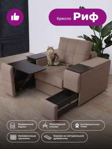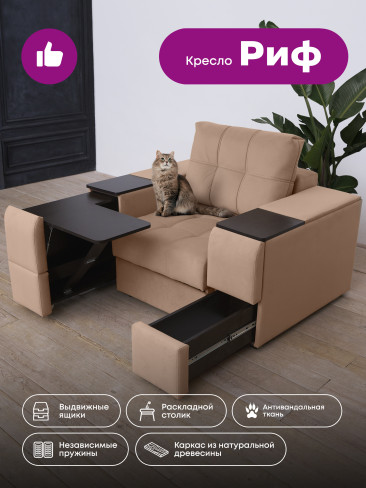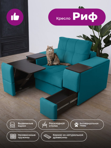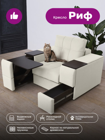 Кресло "РИФ" со встроенным столиком и выдвижными ящиками в ткани Teddy