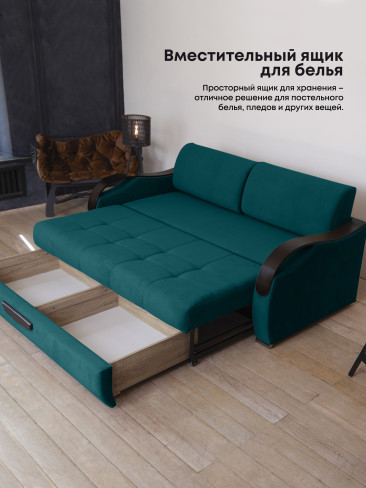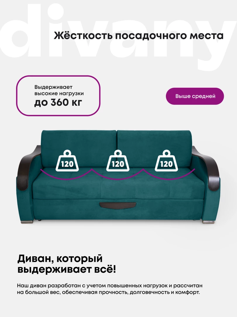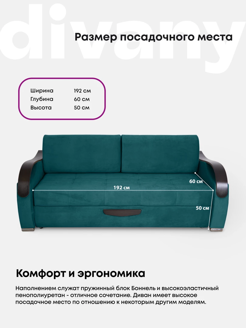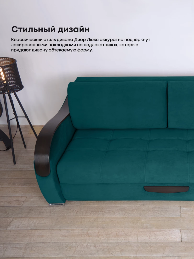 Прямой диван «Диор Люкс» с выкатным механизмом в ткани Velutto — это современное и удобное решение для гостиной, спальни или квартиры-студии. Компактный размер в сочетании с функциональностью делает эту модель универсальной для использования в любых помещениях. Диван оснащён выкатным механизмом трансформации, который позволяет легко и быстро превратить его в полноценное спальное место. Такой вариант идеально подойдёт для ежедневного использования или в качестве дополнительного спального места для гостей. Обивка выполнена из ткани Velutto — бархатистого материала, приятного на ощупь и устойчивого к износу. Она проста в уходе, долго сохраняет привлекательный внешний вид и придаёт мебели благородный акцент. Каркас дивана изготовлен из натуральной древесины и прочного ЛДСП, что гарантирует долговечность конструкции. В качестве наполнителя используется пенополиуретан повышенной плотности, который обеспечивает комфортную посадку и упругость. Прямой выкатной диван «Диор Люкс» в ткани Velutto сочетает стильный дизайн, функциональность и комфорт. Он станет отличным выбором для тех, кто ищет удобную и практичную мебель для дома. Преимущества — тройной выкатной механизм, БНП, велюр Velutto.