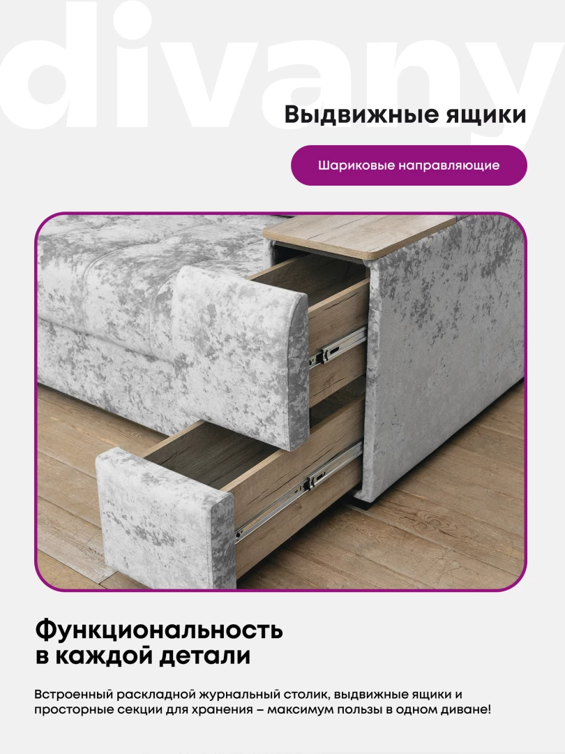 Идеальная, с ровными строчками, соблюдением всех пропорций и симметрии обивка — половина успеха качественного исполнения дивана. Ассортимент наших тканей впечатляет разнообразием расцветок, видов и фактур, отличающихся высокой износостойкостью и устойчивостью к воздействию внешних факторов. Новейшее промышленное оборудование, позволяющее с высокой точностью выполнять все необходимые операции и высокий профессионализм сотрудников с большим опытом работы изготовления мягкой мебели, позволяют производить диваны с безупречной обивкой и наполнением.