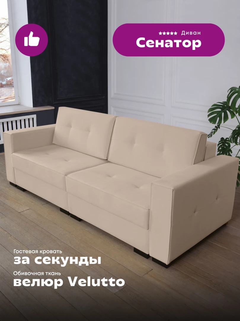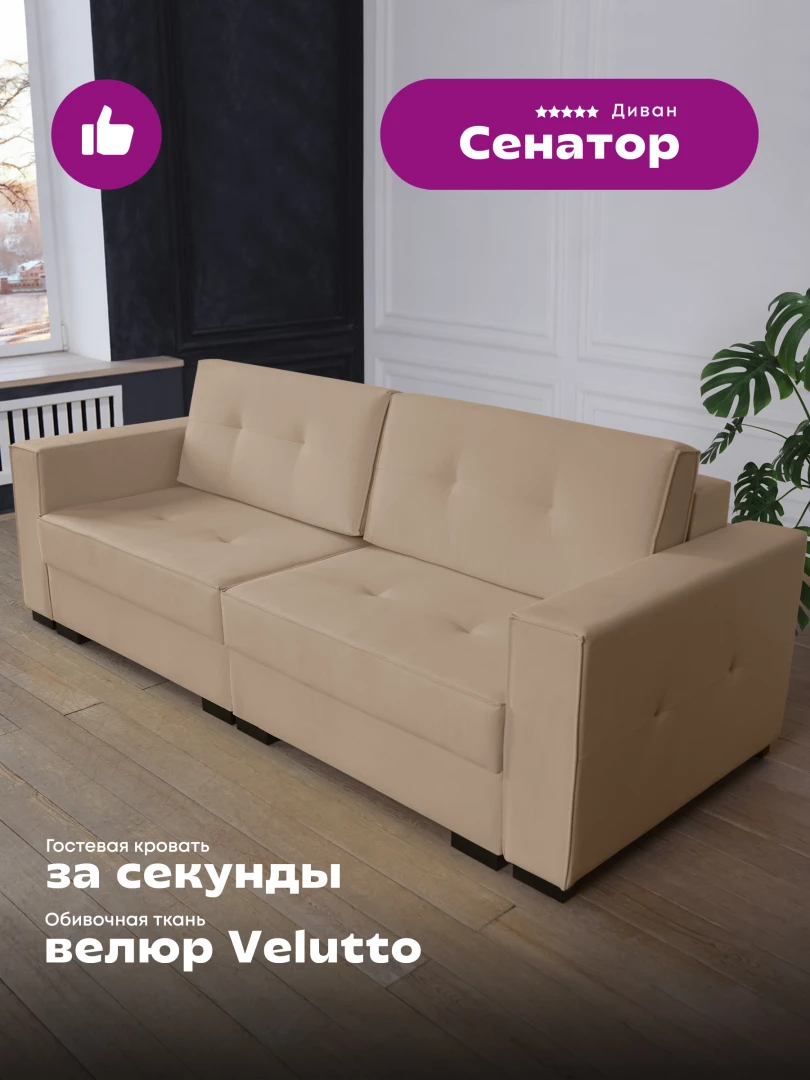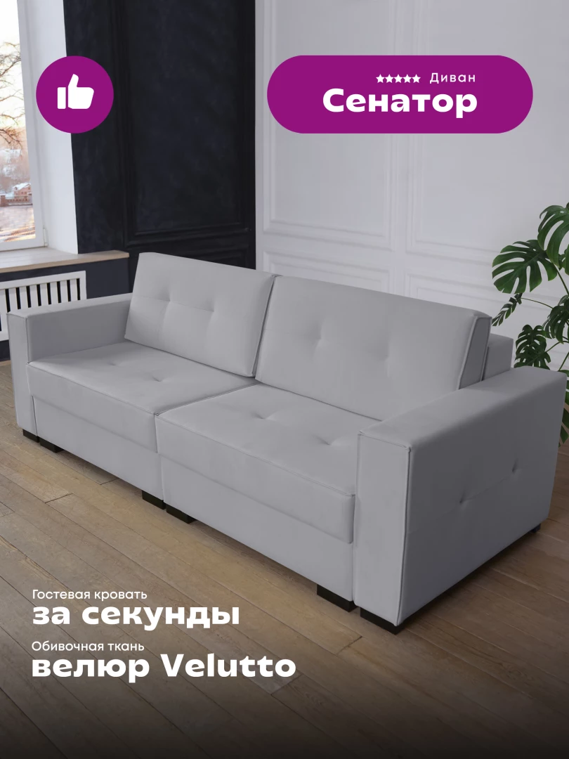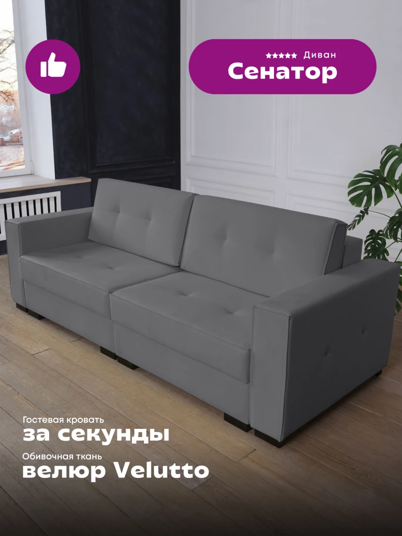 Прямой диван «Сенатор» NEW (без утяжки) в ткани Velutto — это современная модель, сочетающая в себе стиль, удобство и практичность. Лаконичный дизайн без декоративных утяжек делает диван универсальным решением для интерьеров в стиле минимализм, модерн или скандинавский.