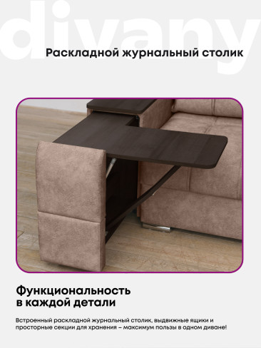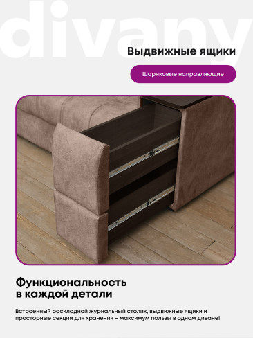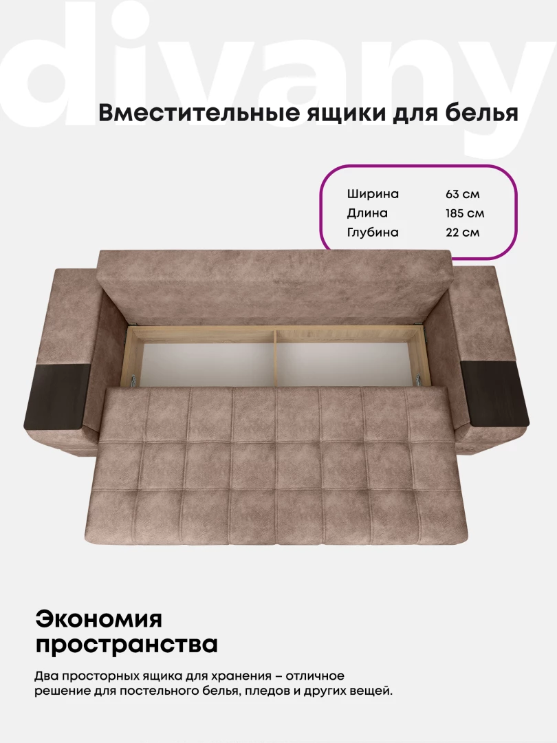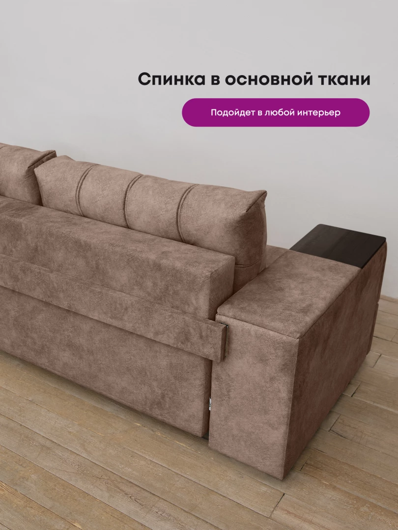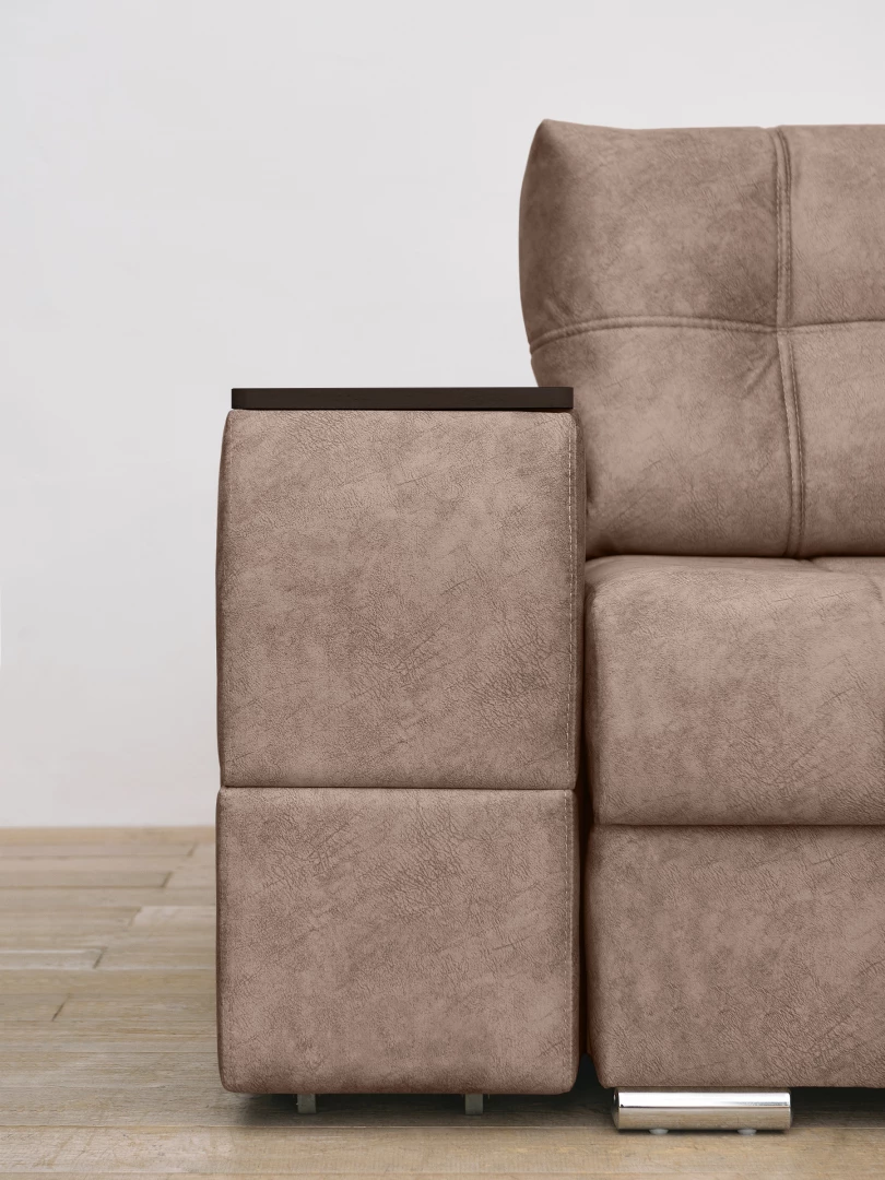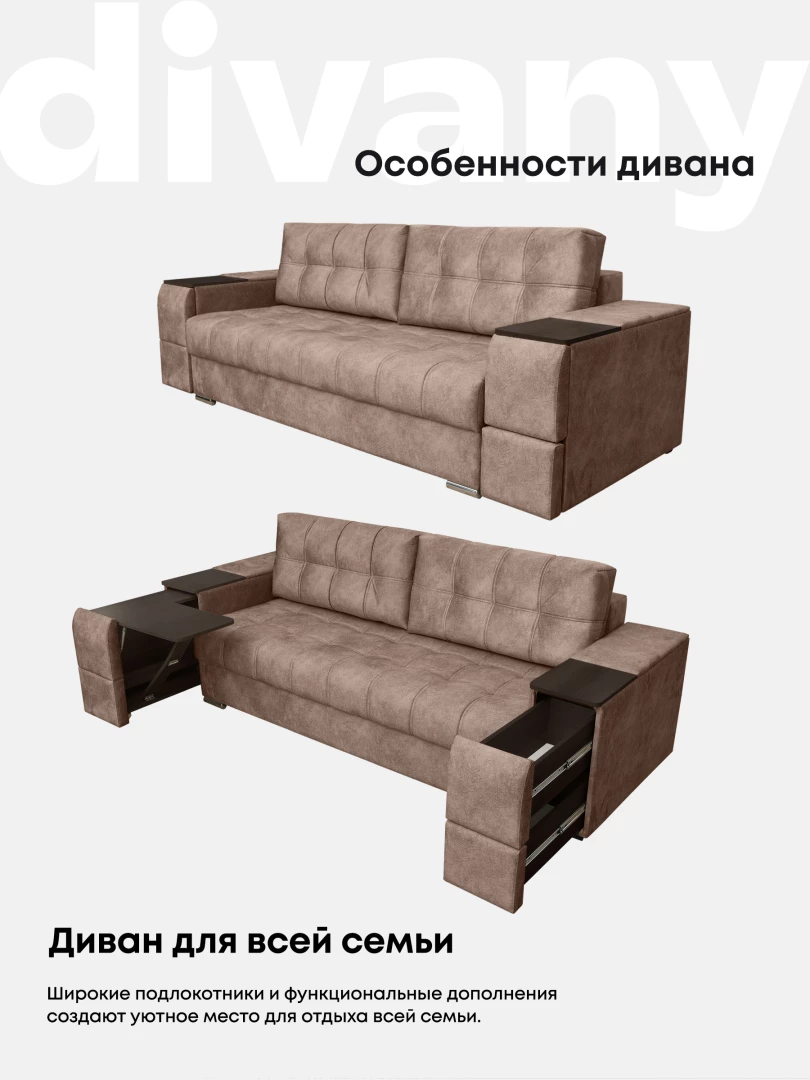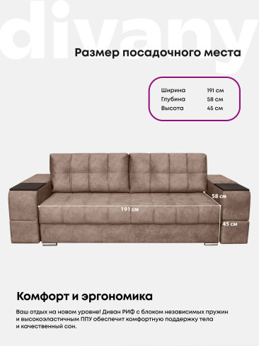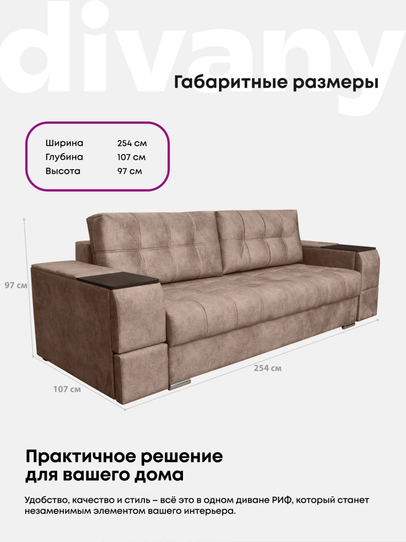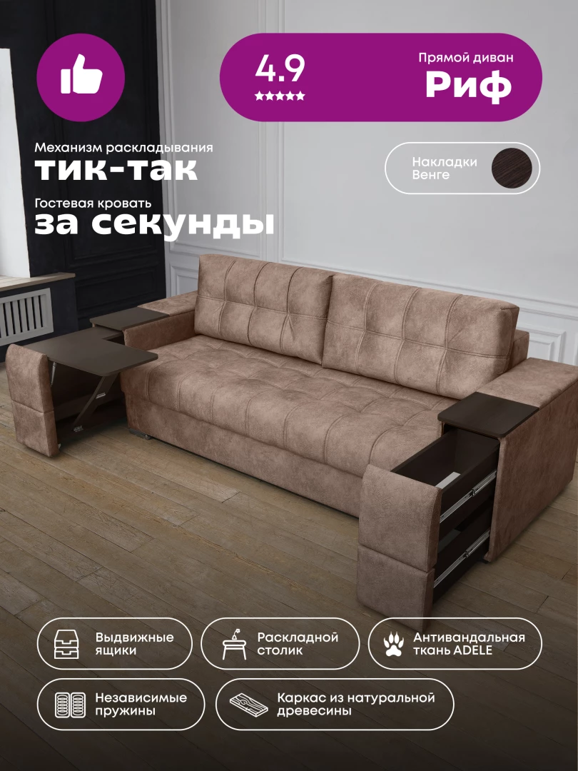 Прямой диван «Риф» в ткани Адель коричневый (браун) (накладки Дуб Венге) (Распродажа)