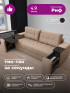 Прямой диван "Риф" в ткани Velutto 05 со встроенным столиком и ящиками в подлокотниках, накладки дуб венге (Распродажа)