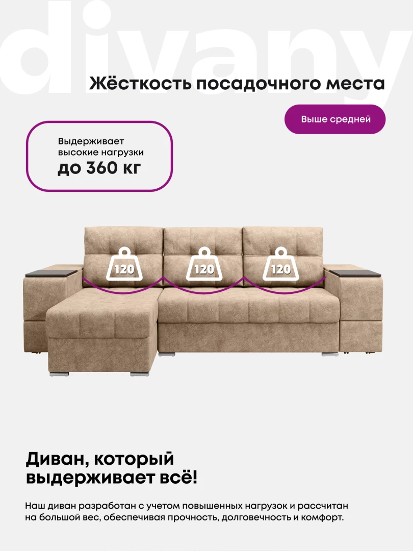 Идеальная, с ровными строчками, соблюдением всех пропорций и симметрии обивка — половина успеха качественного исполнения дивана. Ассортимент наших тканей впечатляет разнообразием расцветок, видов и фактур, отличающихся высокой износостойкостью и устойчивостью к воздействию внешних факторов. Новейшее промышленное оборудование, позволяющее с высокой точностью выполнять все необходимые операции и высокий профессионализм сотрудников с большим опытом работы изготовления мягкой мебели, позволяют производить диваны с безупречной обивкой и наполнением.