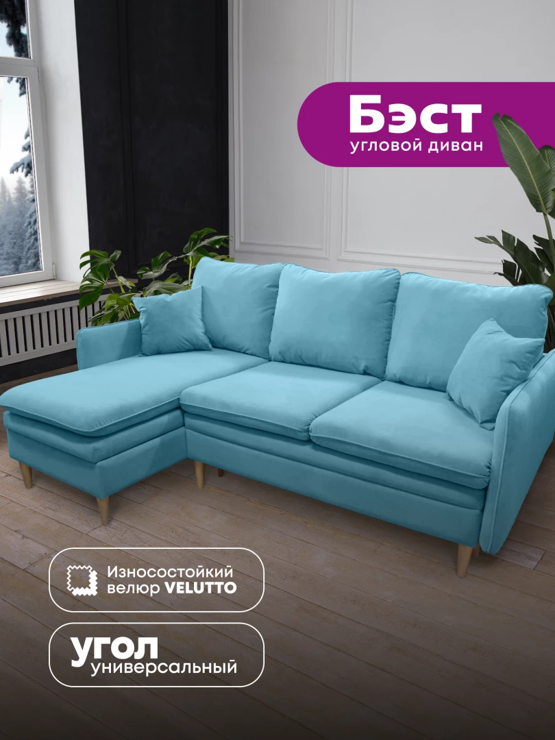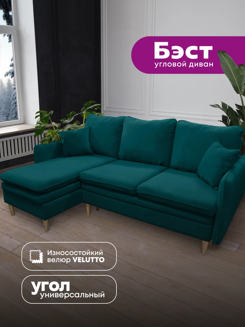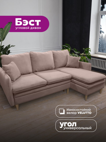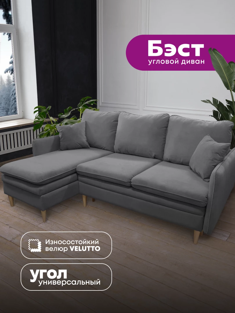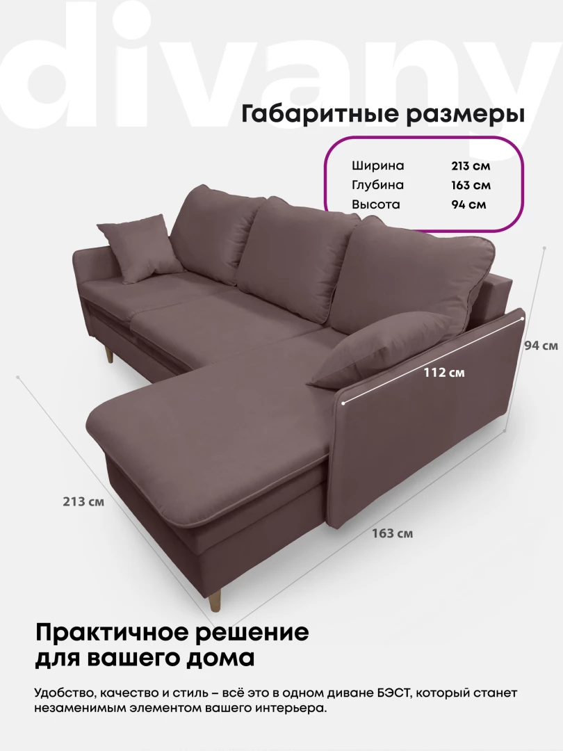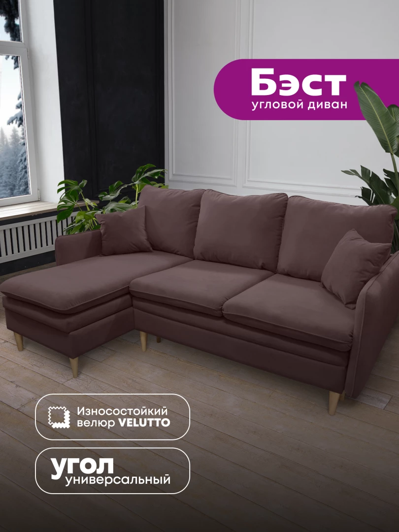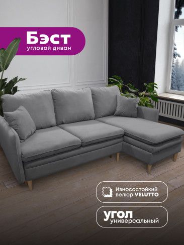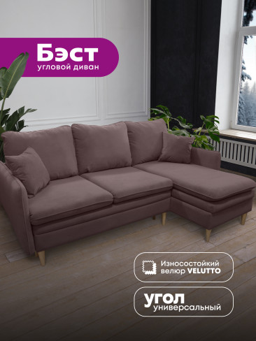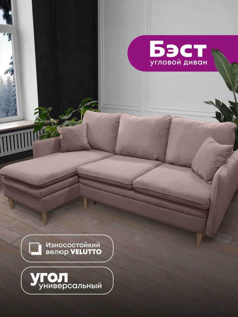 Угловой диван "Бэст" с высокими ножками 150 мм, Velutto 06 (левый угол) — это стильная и практичная мебель для дома, удачно сочетающая комфорт, надёжность и современный дизайн. Благодаря габаритам 2100×960×1550 мм диван отлично подойдёт как для гостиной, так и для спальни, обеспечивая просторное спальное место размером 1960×1500 мм, достаточное для комфортного сна двух взрослых. Механизм раскладывания «тик-так» (пантограф) позволяет легко и плавно трансформировать диван в кровать, не повреждая напольное покрытие. Каркас изготовлен из натуральной древесины и прочной ЛДСП высокого класса безопасности, а в качестве наполнителя используется пенополиуретан повышенной плотности, сохраняющий форму и упругость даже при ежедневной эксплуатации. Обивка выполнена из велюра Velutto — шелковистой и приятной на ощупь ткани с эффектом дорогой матовой фактуры. Материал отличается высокой износостойкостью, устойчивостью к выцветанию и простотой в уходе, а также представлен в широкой палитре модных оттенков. Высокие ножки (150 мм) придают дивану лёгкость и визуальную воздушность, а также позволяют роботу-пылесосу свободно убирать под ним. Дополнительным преимуществом модели является вместительный ящик для хранения постельных принадлежностей. Угловой диван "Бэст" в ткани Velutto — это удачное сочетание комфорта, стиля и функциональности, которое станет ярким акцентом интерьера и обеспечит уют в вашем доме на долгие годы.