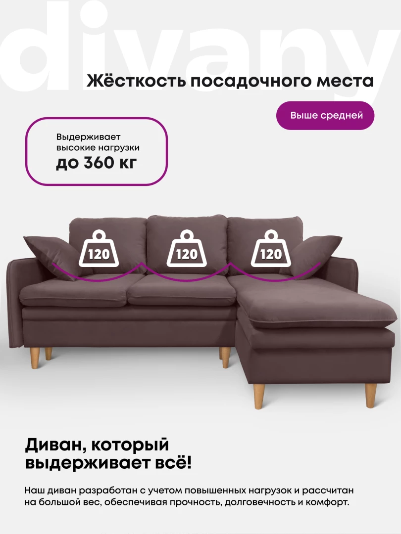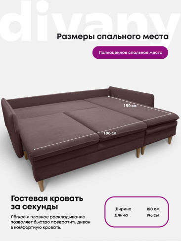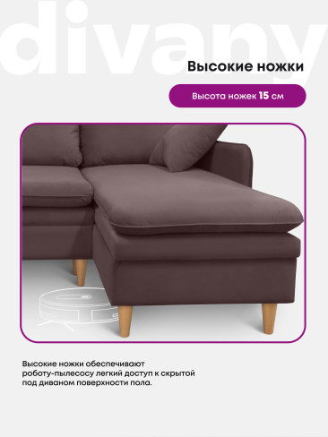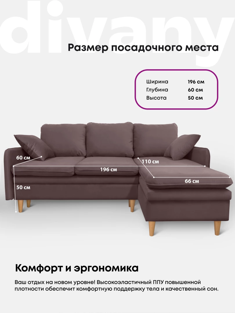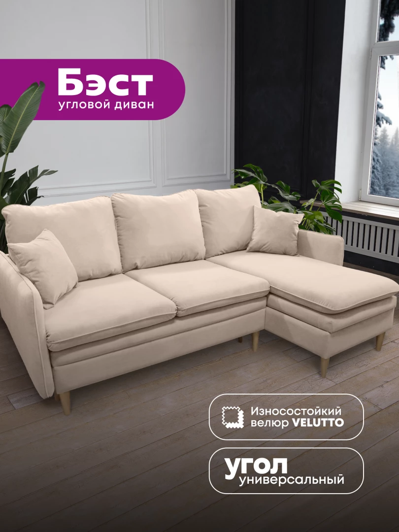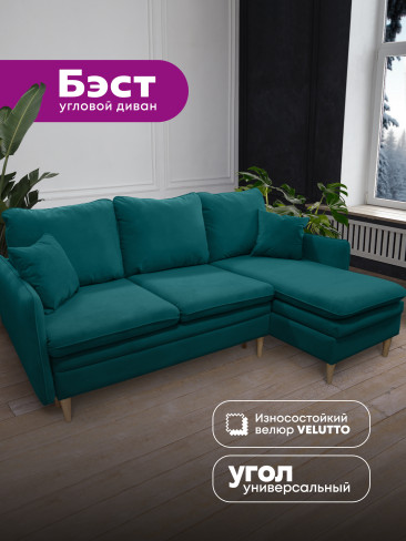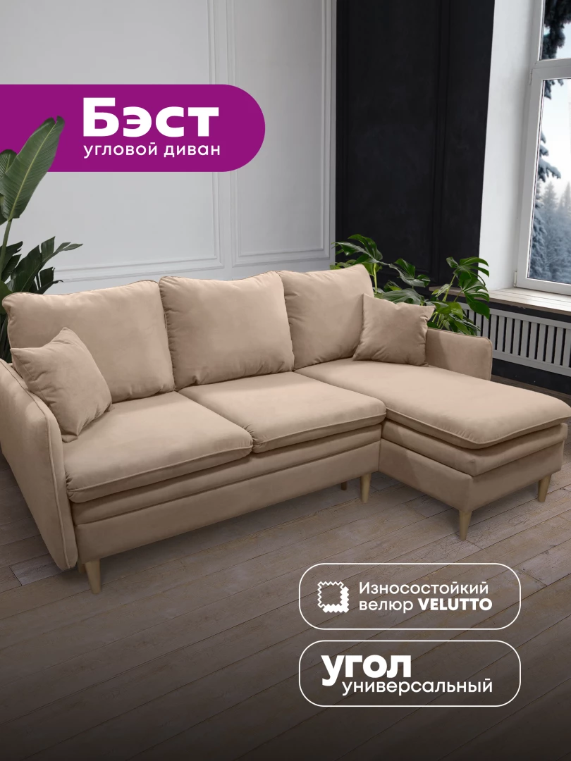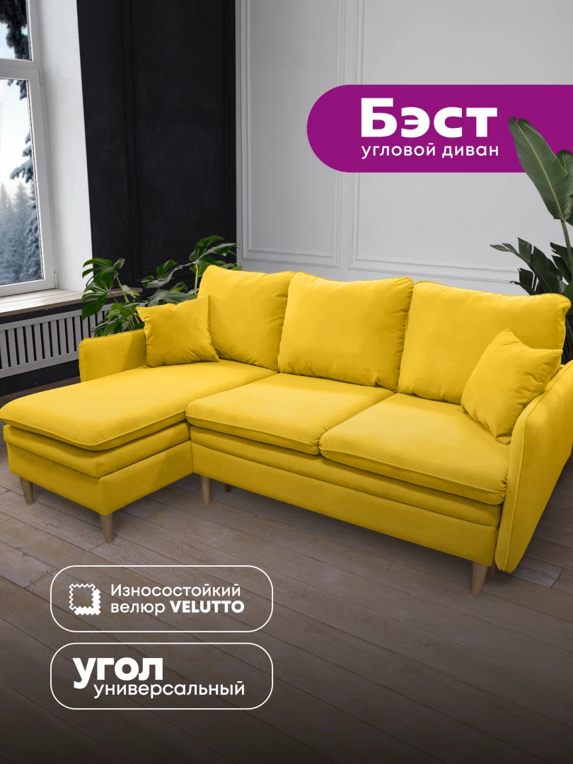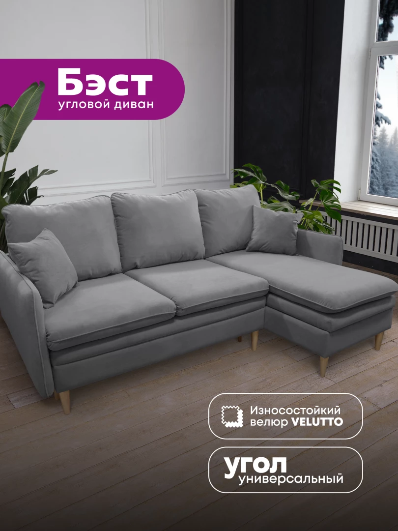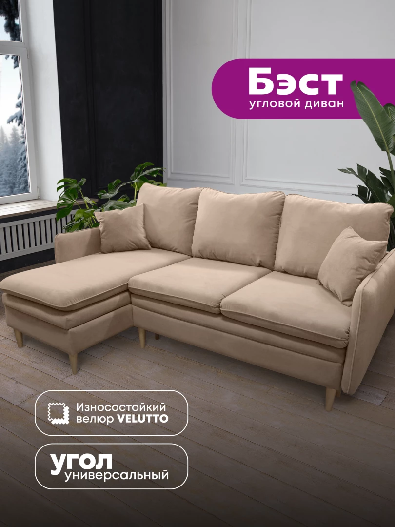 Угловой диван "Бэст" с высокими ножками 150 мм, Velutto 06 (левый угол) — это стильная и практичная мебель для дома, удачно сочетающая комфорт, надёжность и современный дизайн. Благодаря габаритам 2100×960×1550 мм диван отлично подойдёт как для гостиной, так и для спальни, обеспечивая просторное спальное место размером 1960×1500 мм, достаточное для комфортного сна двух взрослых. Механизм раскладывания «тик-так» (пантограф) позволяет легко и плавно трансформировать диван в кровать, не повреждая напольное покрытие. Каркас изготовлен из натуральной древесины и прочной ЛДСП высокого класса безопасности, а в качестве наполнителя используется пенополиуретан повышенной плотности, сохраняющий форму и упругость даже при ежедневной эксплуатации. Обивка выполнена из велюра Velutto — шелковистой и приятной на ощупь ткани с эффектом дорогой матовой фактуры. Материал отличается высокой износостойкостью, устойчивостью к выцветанию и простотой в уходе, а также представлен в широкой палитре модных оттенков. Высокие ножки (150 мм) придают дивану лёгкость и визуальную воздушность, а также позволяют роботу-пылесосу свободно убирать под ним. Дополнительным преимуществом модели является вместительный ящик для хранения постельных принадлежностей. Угловой диван "Бэст" в ткани Velutto — это удачное сочетание комфорта, стиля и функциональности, которое станет ярким акцентом интерьера и обеспечит уют в вашем доме на долгие годы.