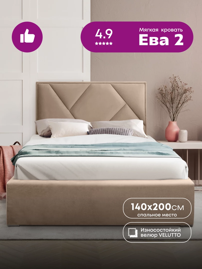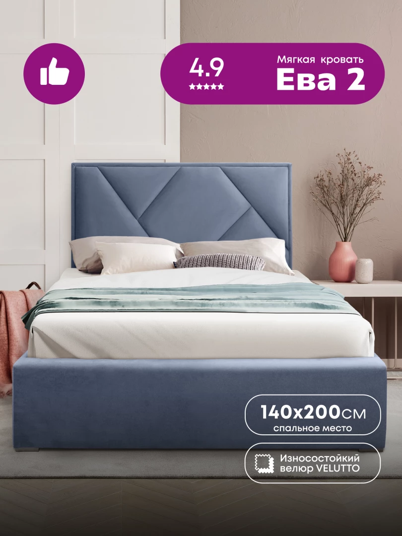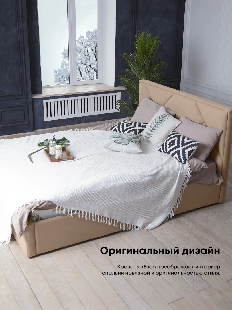Интерьерная кровать «Ева» — это воплощение мечты для ценителей красоты и изящного уюта, выполненная в современном классическом стиле. Изголовье кровати, декорированное геометрической строчкой, выглядит сдержанно и гармонично. Фактурная текстильная обивка дарит высокую степень комфорта и удобства. Кровать «Ева» преображает интерьер спальни новизной и оригинальностью стиля.