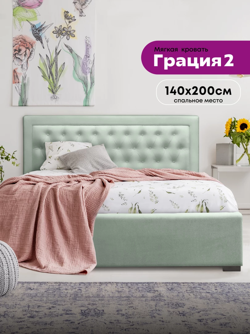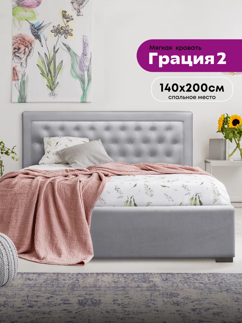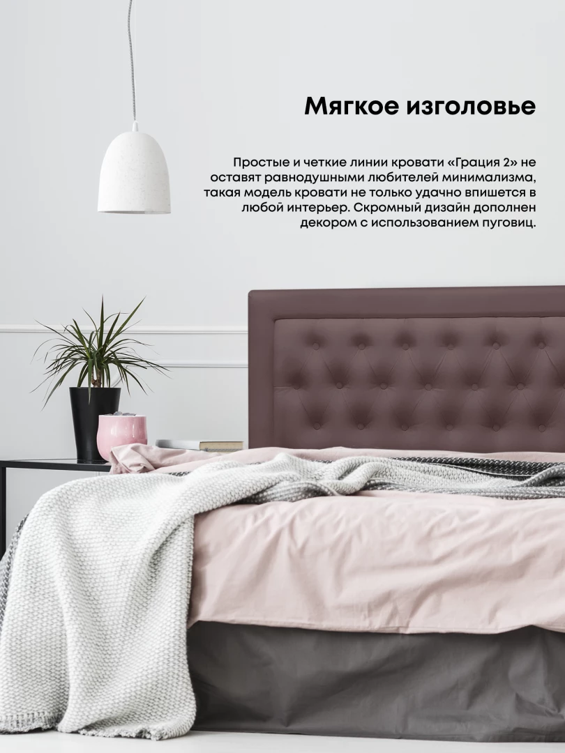 Простые и четкие линии кровати «Грация 2» не оставят равнодушными любителей минимализма, такая модель кровати не только удачно впишется в любой интерьер, но и будет использоваться как удобное и комфортное спальное место. Скромный дизайн дополнен декором с использованием пуговиц. Современный подъемный механизм кровати позволит без усилий использовать бельевой ящик с помощью специальных газовых лифтов. При ее изготовлении использовались лишь качественные материалы, что гарантирует изделию долгий срок службы. Качество сна на кровати «Грация 2» превзойдет все ваши ожидания.