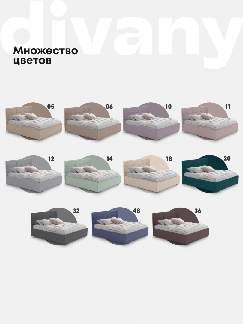 Стильная модель с мягким изголовьем. Эффектная спинка со строгой геометрией рисунка и квадратными пуговицами станет ярким акцентом любой современной спальни. К выбору предлагаются спальные места шириной в 1,2 м, 1,4 м, 1,6 м и 1,8 м. При индивидуальном изготовлении вы можете уменьшить или увеличить длину спального места кровати в пределах 10-20 см – за дополнительную плату. Каждая кровать не только красива, но и функциональна: подъемный мебельный механизм на газлифте открывает нишу для белья той же ширины. У бельевого ящика предусмотрено съемное дно, что значительно облегчает уборку. Данную модель можно изготовить только в ткани. Если у вас есть домашние животные, обратите внимание на коллекцию тканей со свойствами "антикоготь". Мы работаем с известными производителями тканей, такими как Арбен, Союз-М, Mebelliery, DOMiART, Art-Vision, Аметист, Эгида, Tries, Артефакт, Бонлайф, Лэзертач, Вектор, Текстиль Плюс, Тексопарк, Velvetex, Vip textil. Ассортимент наших тканей впечатляет разнообразием расцветок, видов и фактур, отличающихся высокой износостойкостью и устойчивостью к воздействию внешних факторов. Вы можете ознакомиться с ассортиментом этих компаний на их официальном сайте и выбрать необходимую ткань.