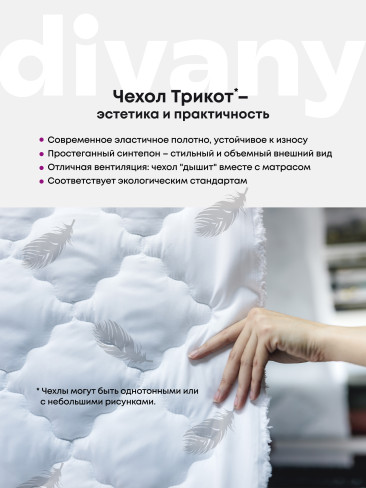 Экономичным и прочным материалом для обшивки матраса, является современное эластичное полотно трикот. Простеганный на объемном синтепоне имеет эстетически привлекательный вид. Чехол для матраса из трикота пропускает воздух и не препятствует его постоянной циркуляции и соответствует экологичным требованиям к изделию.