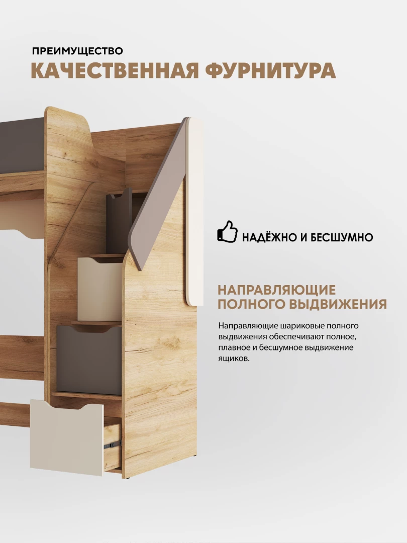 •    Под каждой ступенью лестницы находится удобный и вместительный выдвижной ящик