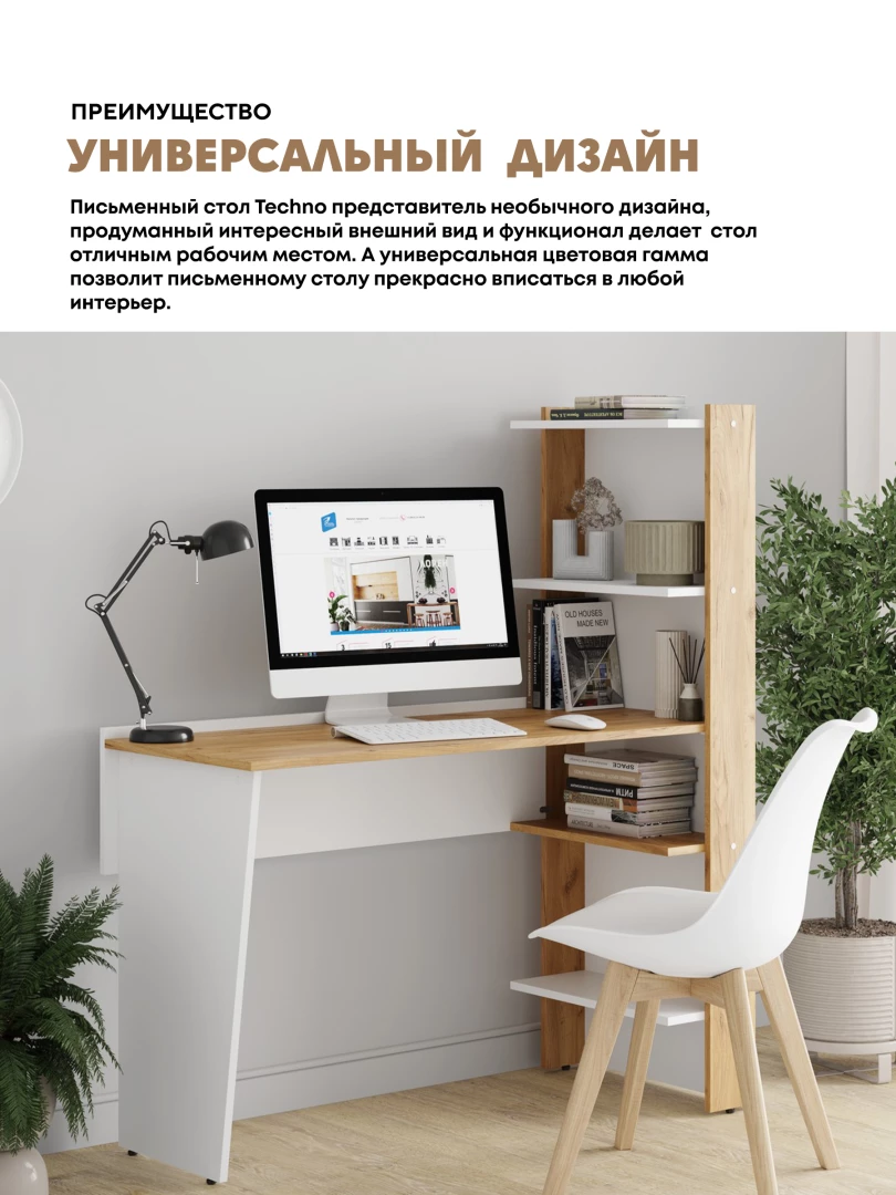 Письменный стол Techno, его продуманный интересный внешний вид и функционал делает  стол отличным рабочим местом. А универсальная цветовая гамма позволит письменному столу прекрасно вписаться в любой интерьер.