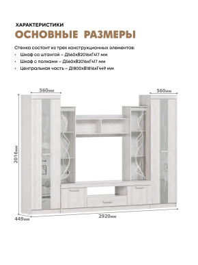 Выполненная в строгом классическом стиле стенка «Атлантида-2Б» - пример удачного совмещения элегантного дизайна и функциональности.