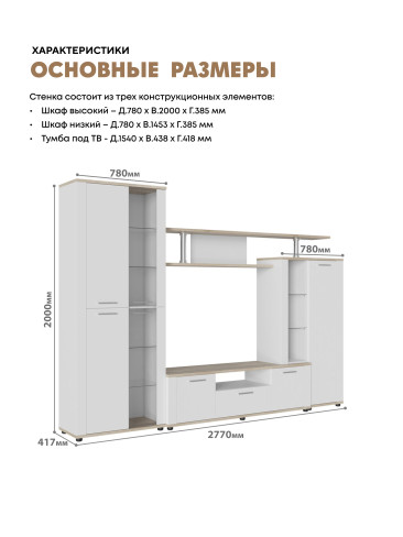 Габаритный размер (ШхВхГ): 2770х2000х417мм.