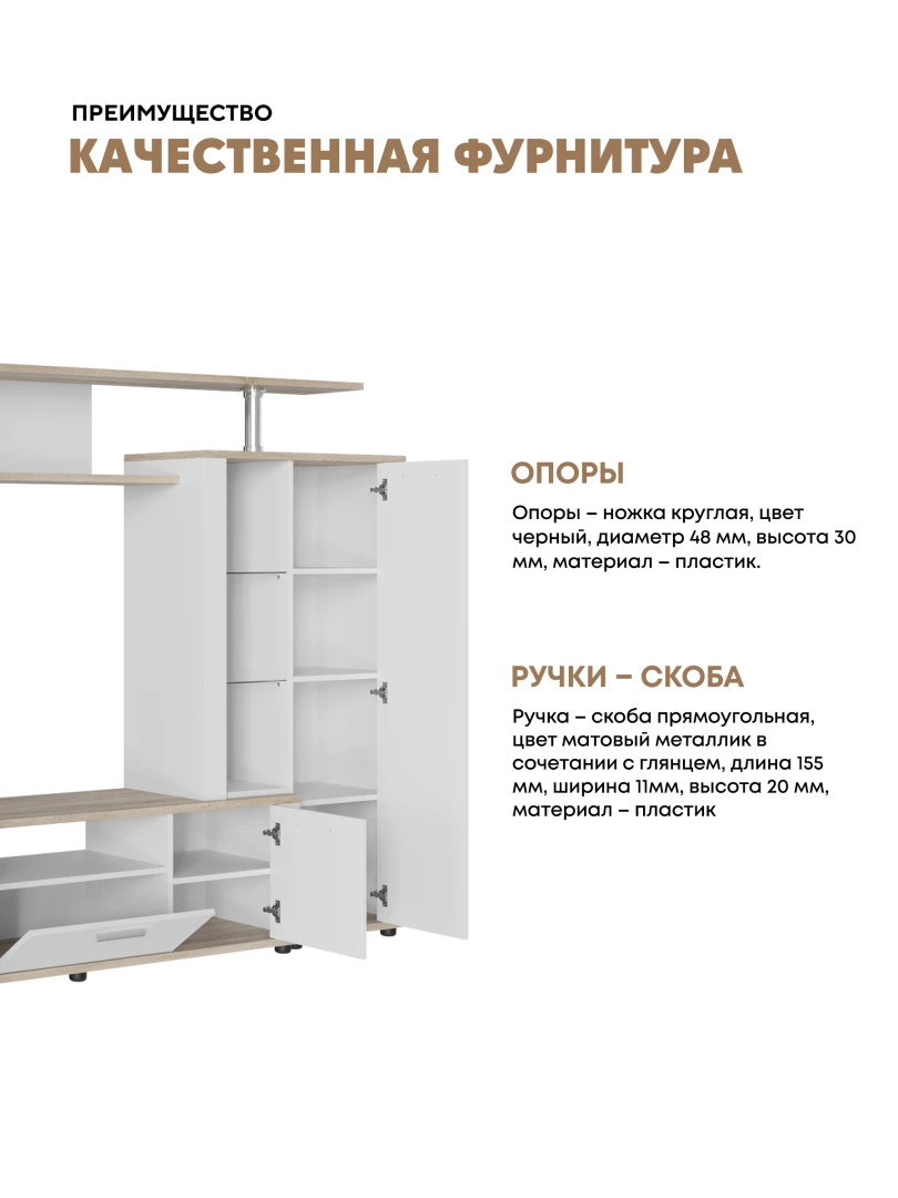 •    Возможна установка стеклостворки на вертикальный пенал малого шкафа (дополнительная опция)