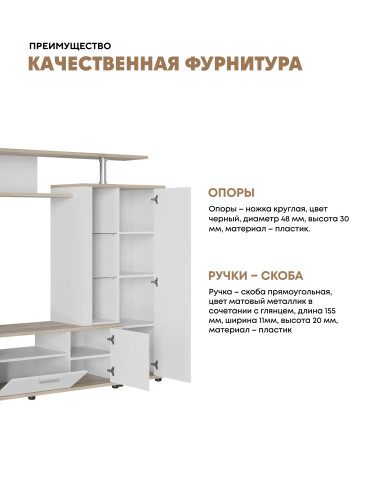 Петли позволяют крепить фасады на корпус шкафов. Качество используемой фурнитуры — гарантия долгой службы изделия. Петли и фурнитура нашей мебели обладают высоким запасом прочности и выдерживают значительные нагрузки, на протяжении всего срока эксплуатации.