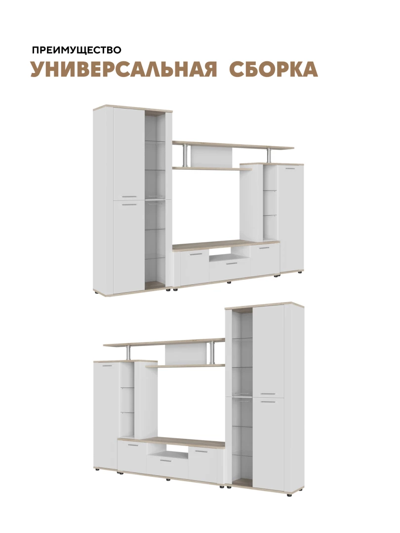 •    Гостиная может собираться как на правую, так и на левую стороны.