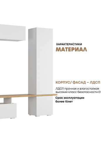• Прочная и влагостойкая ЛДСП, высокий класс безопасности E1