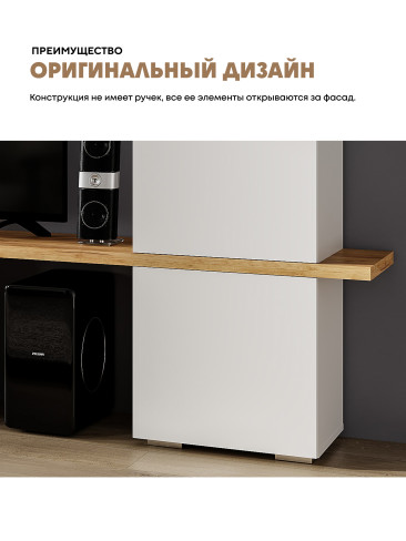 •    Конструкция не имеет ручек, все ее элементы открываются за фасад