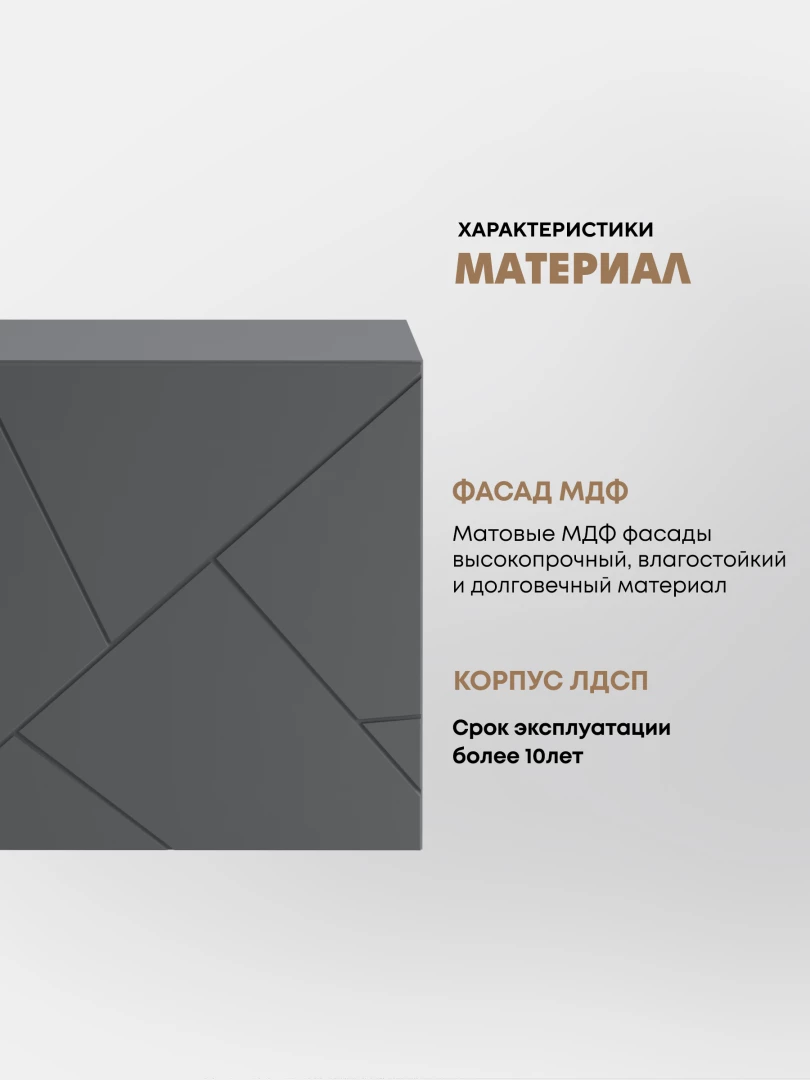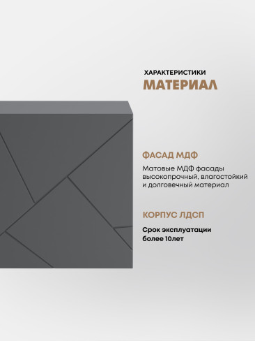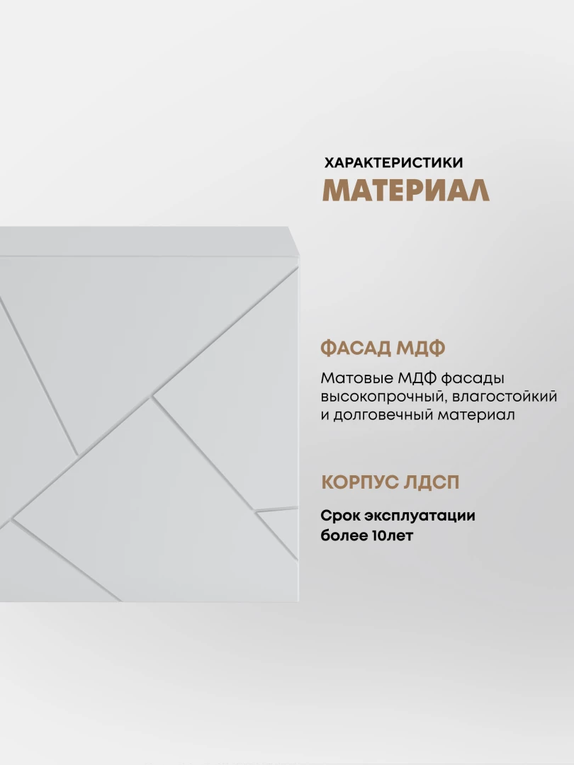 •    Изящные накладные МДФ-фасады тумб украшены с помощью абстрактного узора, сделанного с помощью фрезеровки