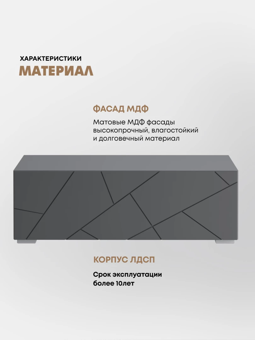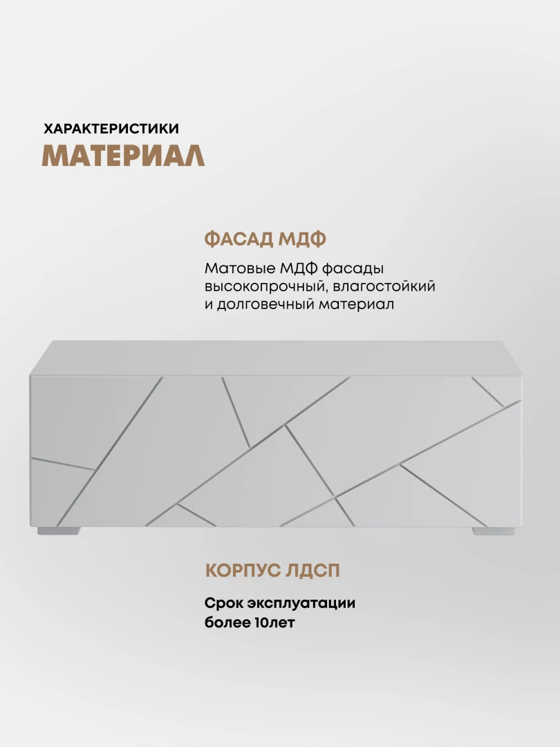 •    Изящные накладные МДФ-фасады тумб украшены с помощью абстрактного узора, сделанного с помощью фрезеровки
