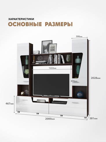 Габаритный размер (ШхВхГ): 2000х2028х381 мм.