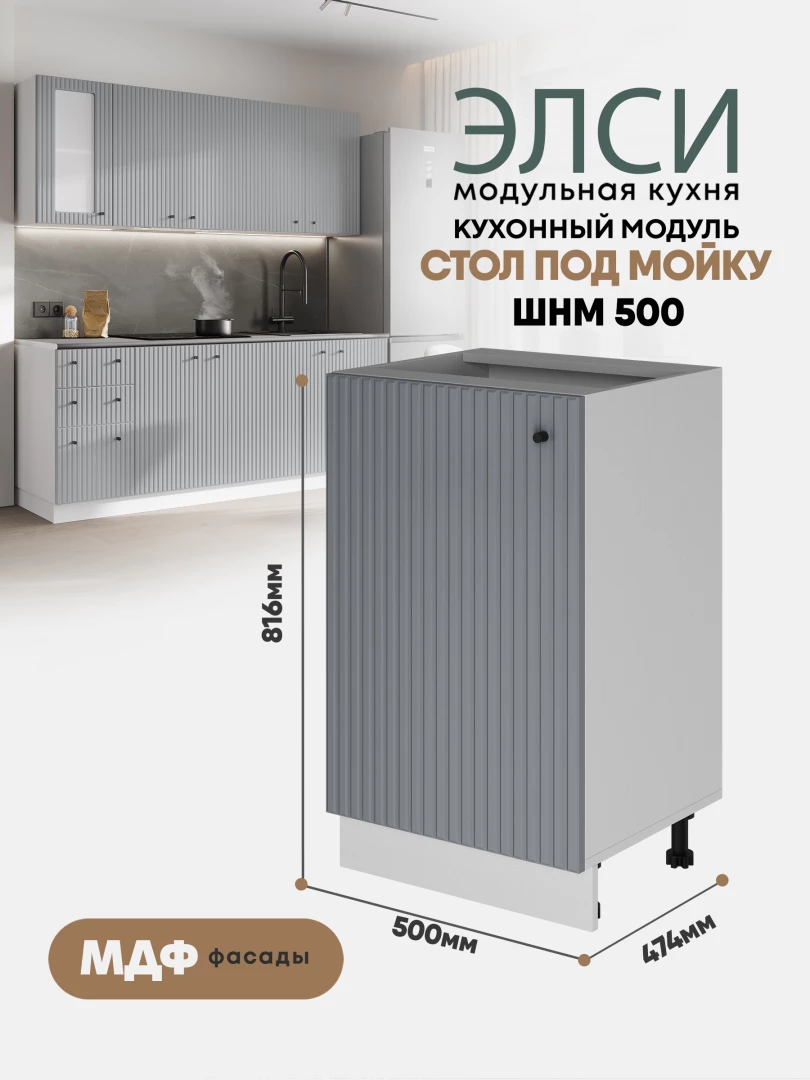 Рельефные фасады модульной кухни «Элси» называю микротрендом, у которого есть все шансы задержаться в моде не на один сезон. Дизайн фасадов с вертикальными полосками меняет восприятие пространства – визуально раздвигает, добавляет воздушности.