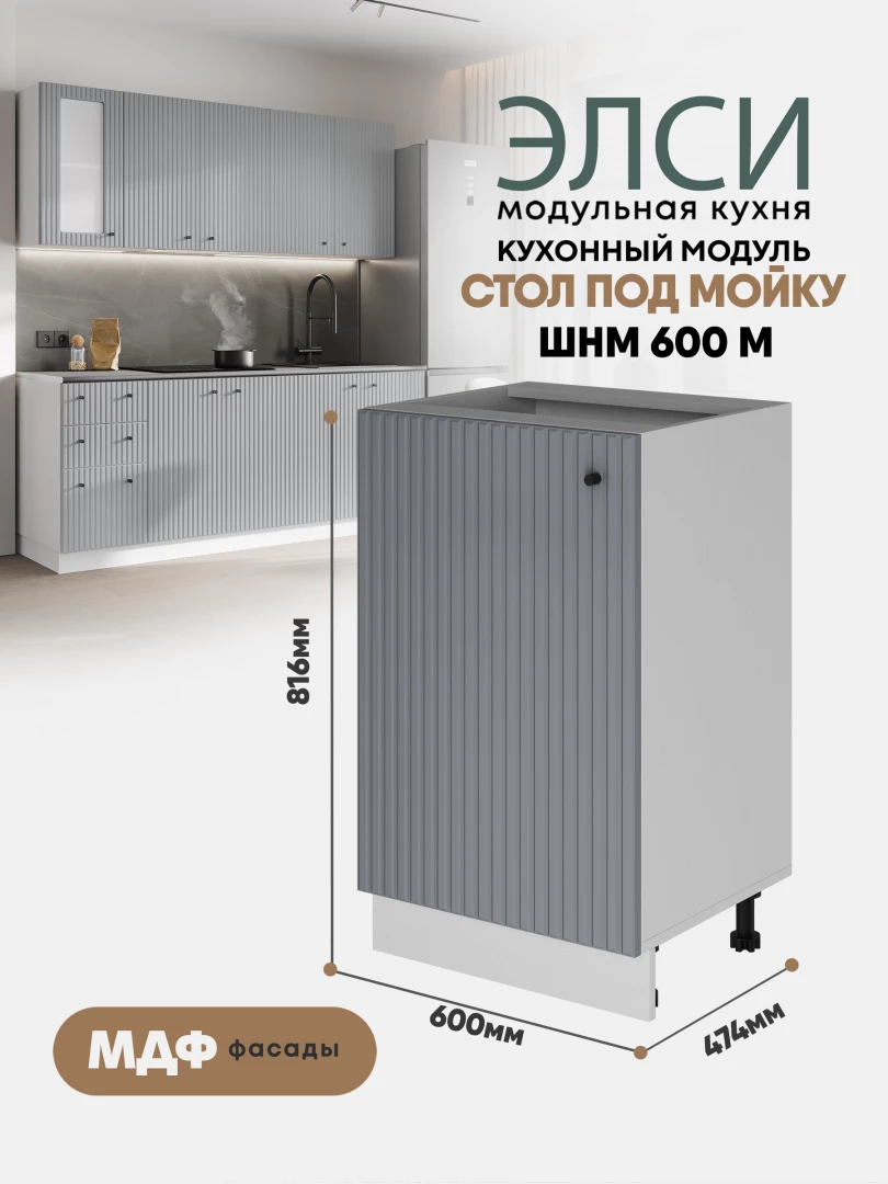 Кухонный модуль напольный под мойку ШНМ 600М "Элси" с одной створкой Белый