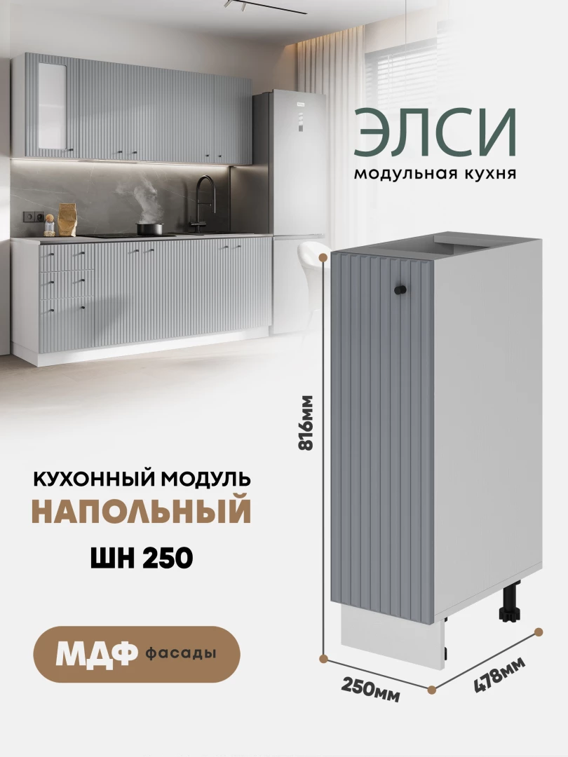 Рельефные фасады модульной кухни «Элси» называю микротрендом, у которого есть все шансы задержаться в моде не на один сезон. Дизайн фасадов с вертикальными полосками меняет восприятие пространства – визуально раздвигает, добавляет воздушности.