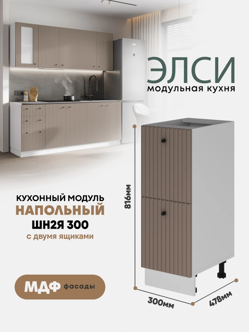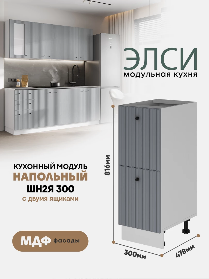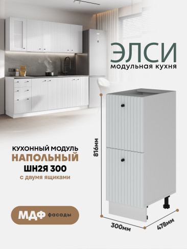 Кухонный напольный модуль с 2-мя ящиками "Элси" ШН2Я 300 Белый