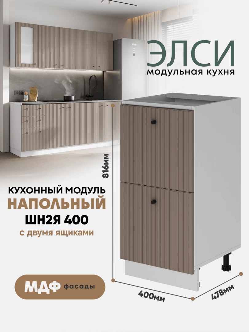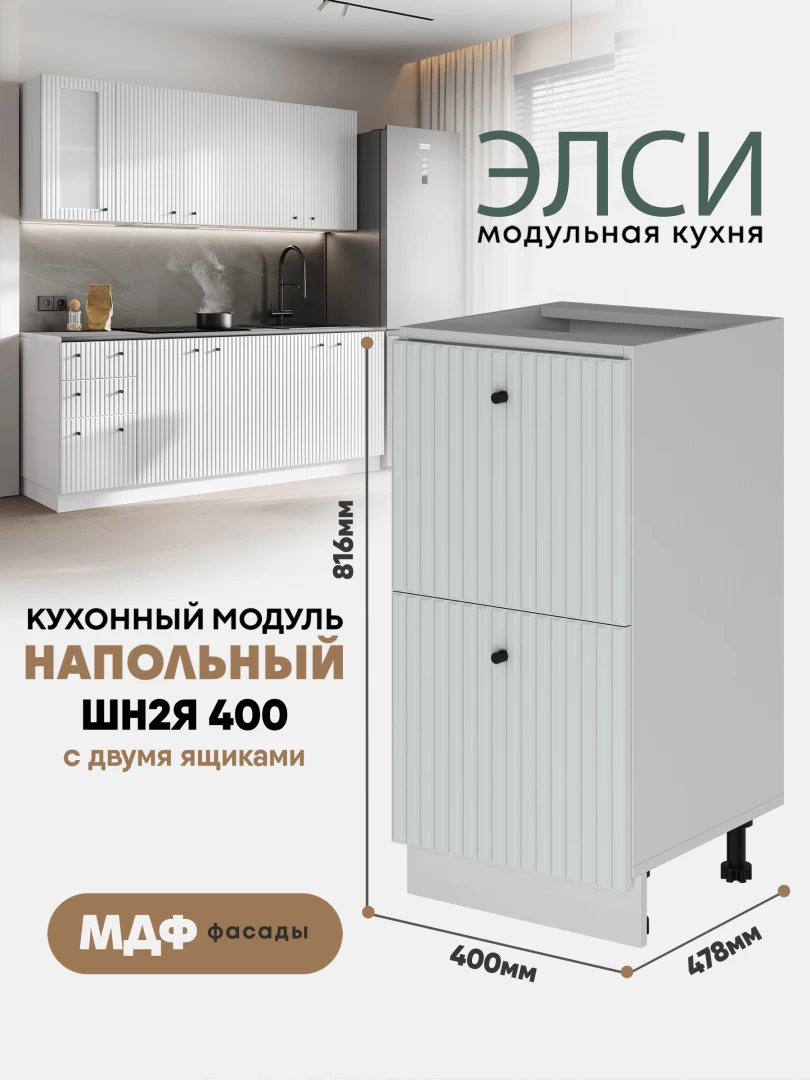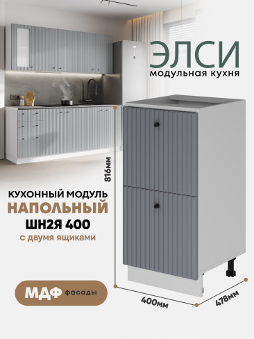 Кухонный напольный модуль с 2-мя ящиками "Элси" ШН2Я 400 Белый