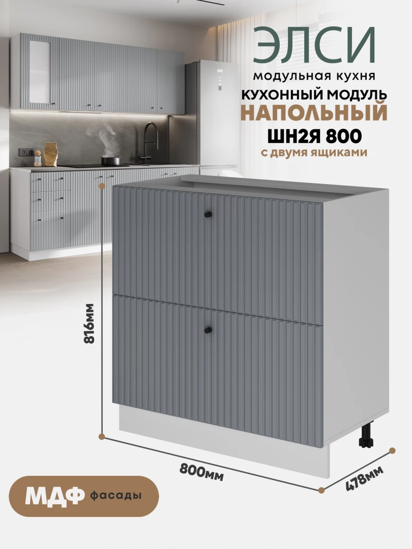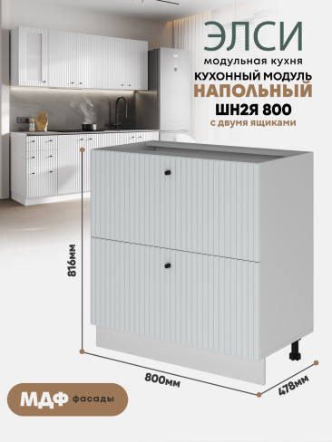 Кухонный напольный модуль с 2-мя ящиками "Элси" ШН2Я 800 Белый