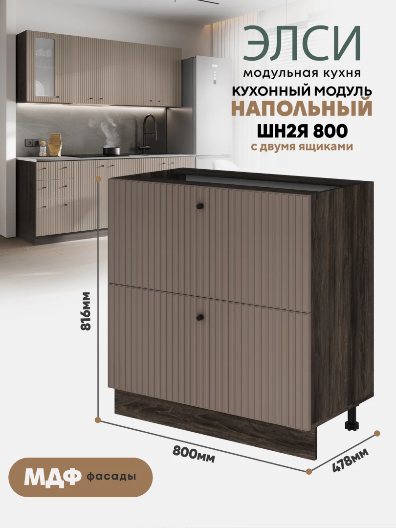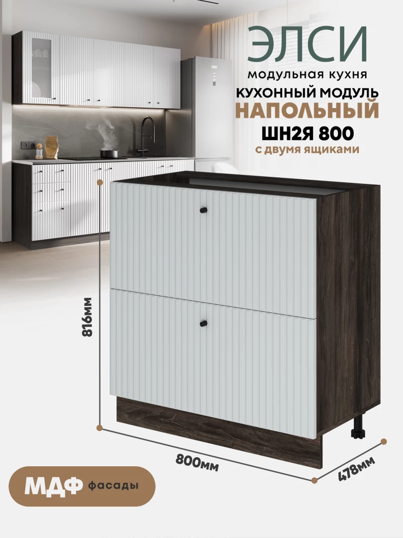 Кухонный напольный модуль с 2-мя ящиками "Элси" ШН2Я 800 Ликата