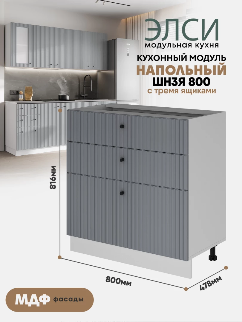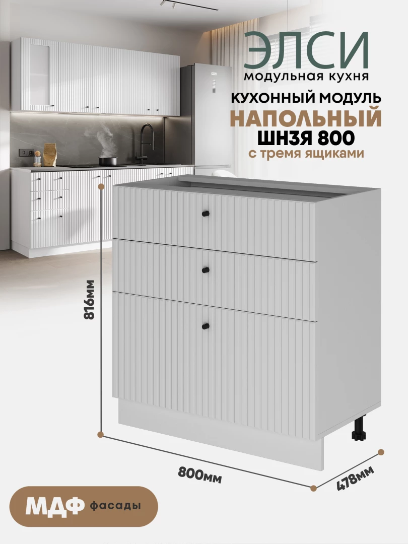 Кухонный напольный модуль с 3-мя ящиками "Элси" ШН3Я 800 Белый