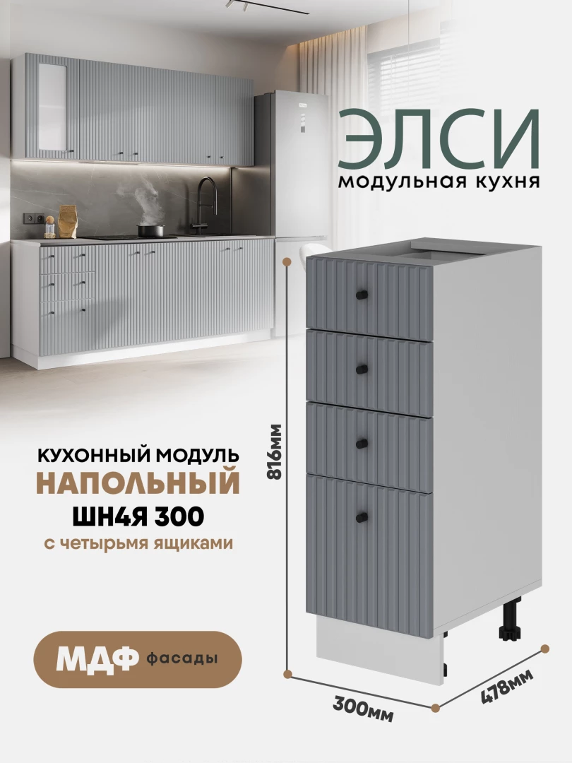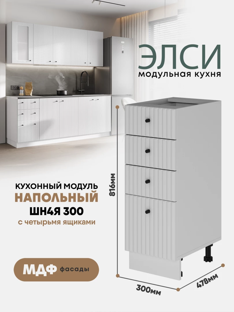 Кухонный напольный модуль с 4-мя ящиками "Элси" ШН4Я 300 Белый