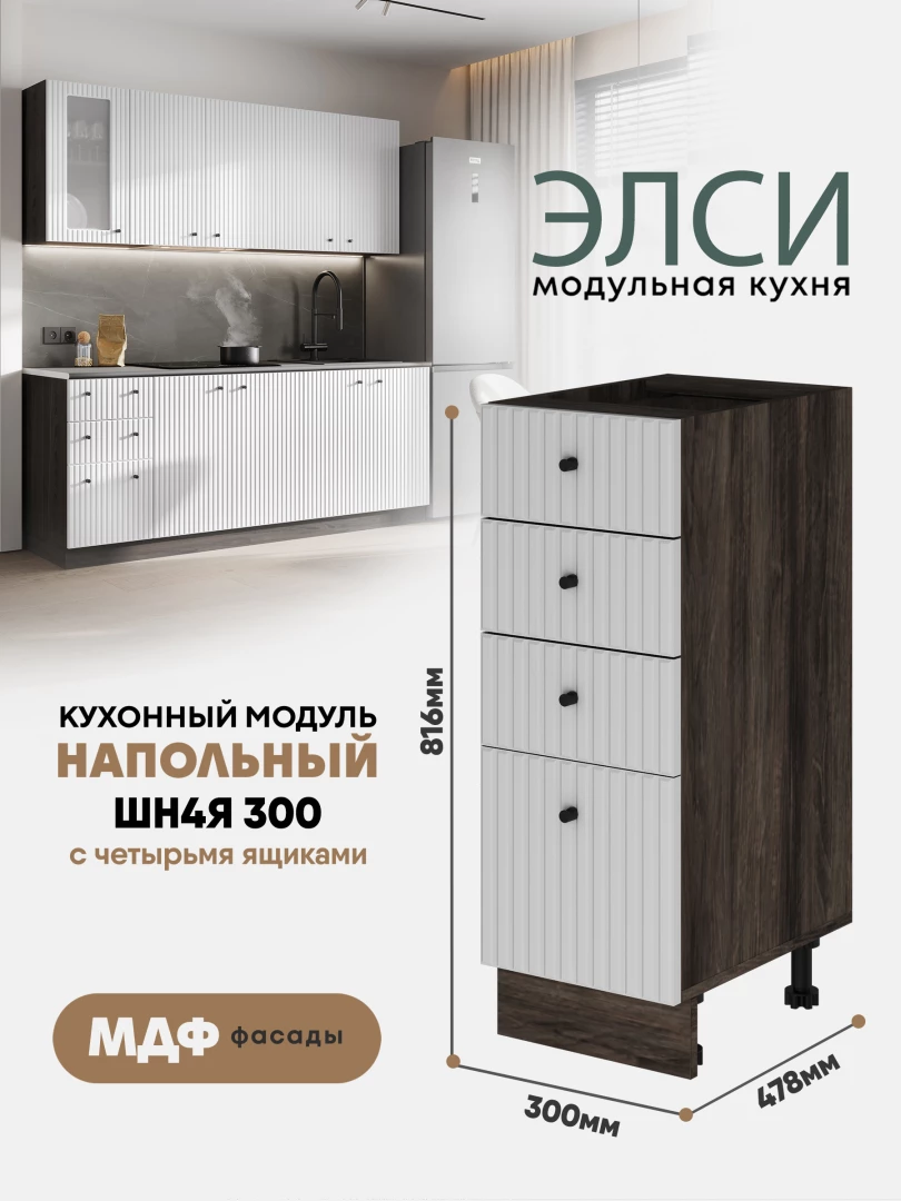 Кухонный напольный модуль с 4-мя ящиками "Элси" ШН4Я 300 Ликата