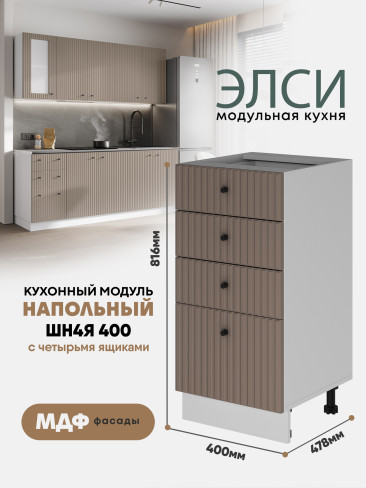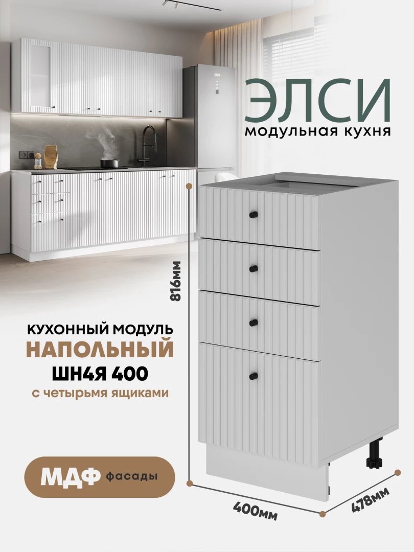 Кухонный напольный модуль с 4-мя ящиками "Элси" ШН4Я 400 Белый