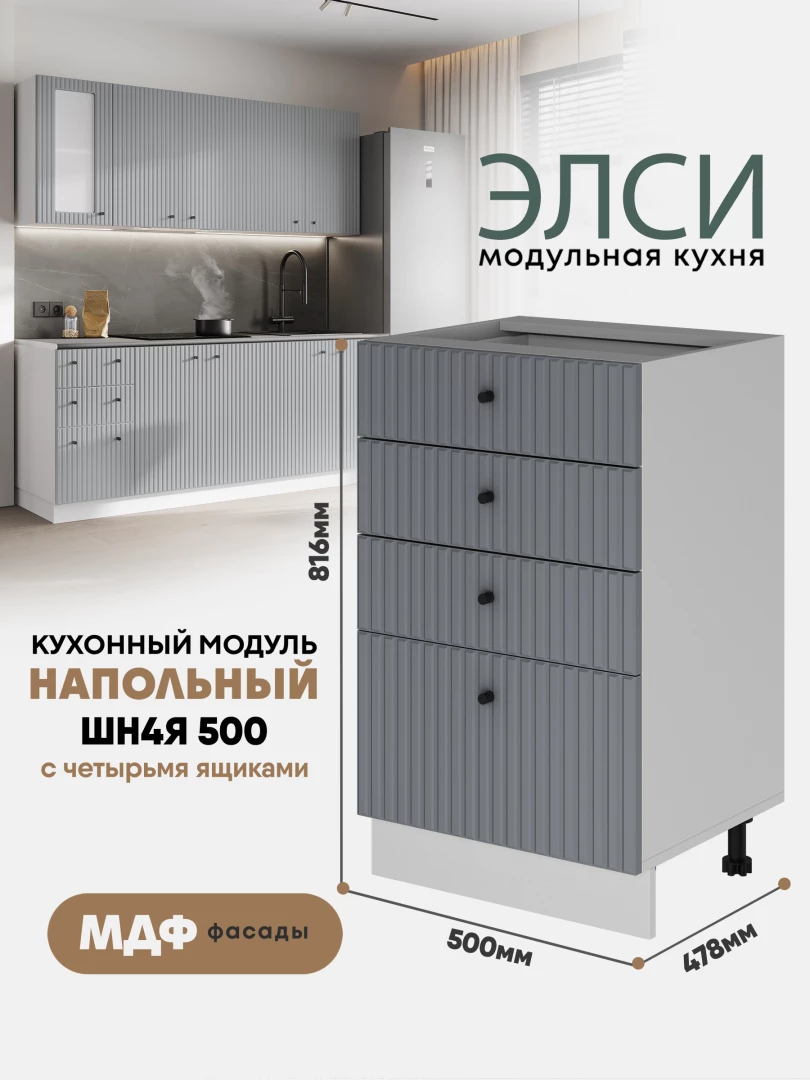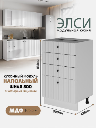 Кухонный напольный модуль с 4-мя ящиками "Элси" ШН4Я 500 Белый