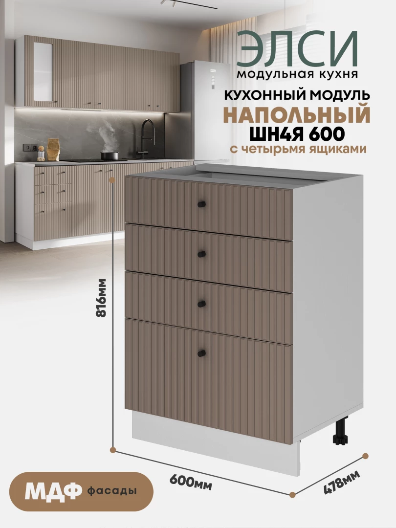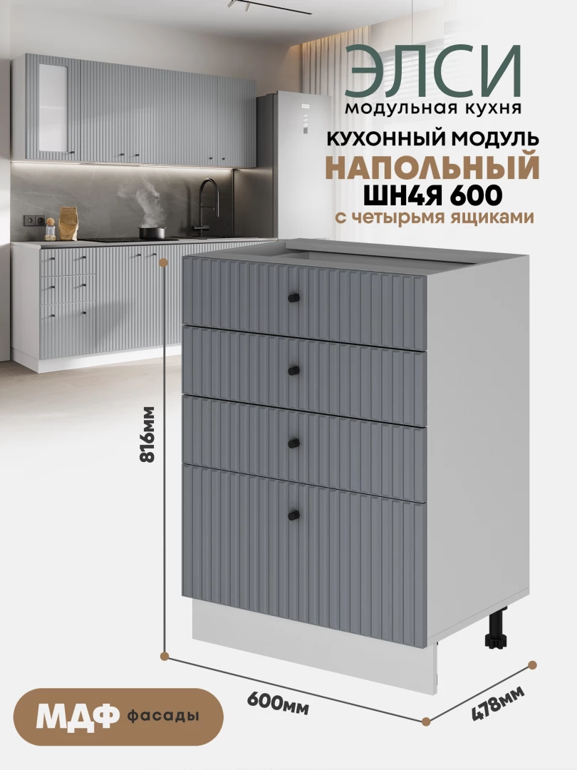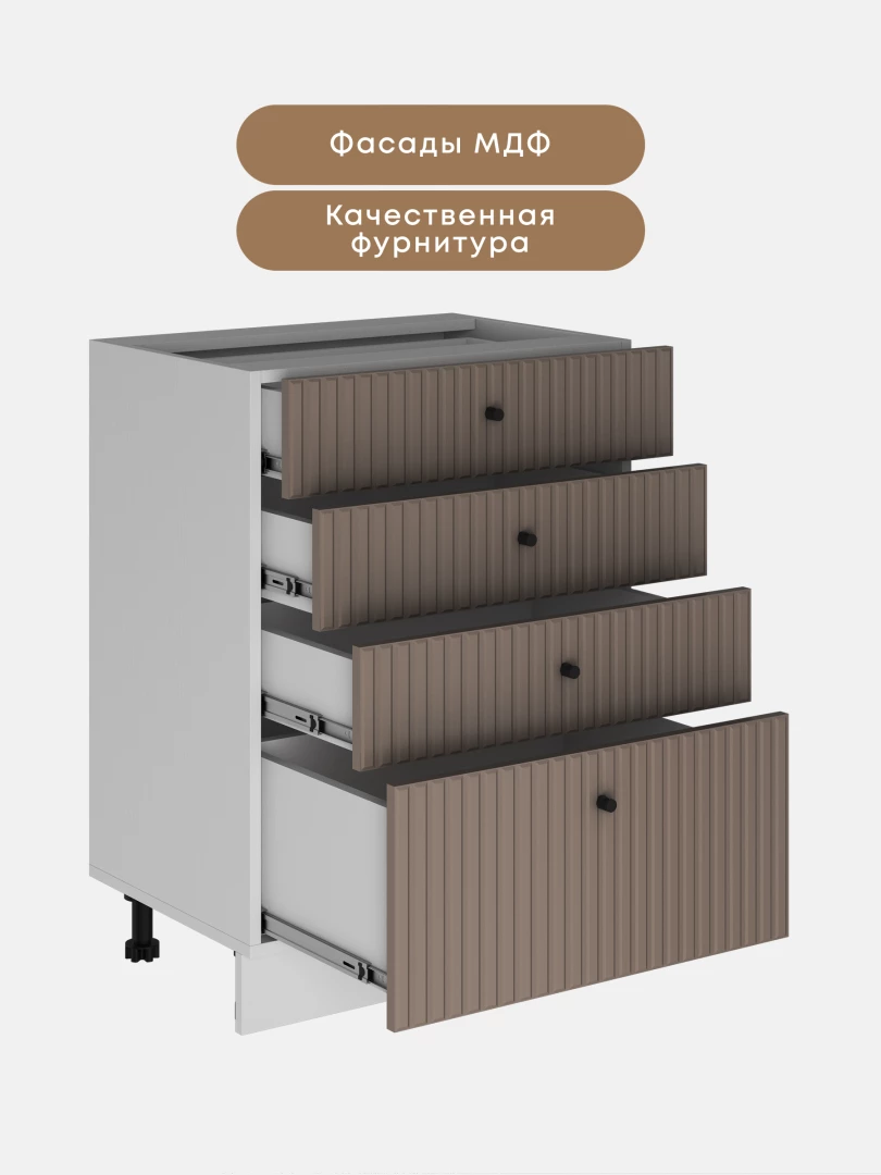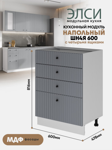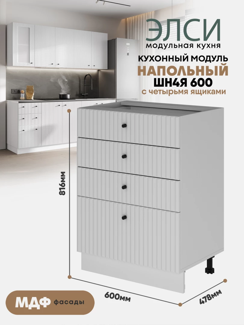 Кухонный напольный модуль с 4-мя ящиками "Элси" ШН4Я 600 Белый
