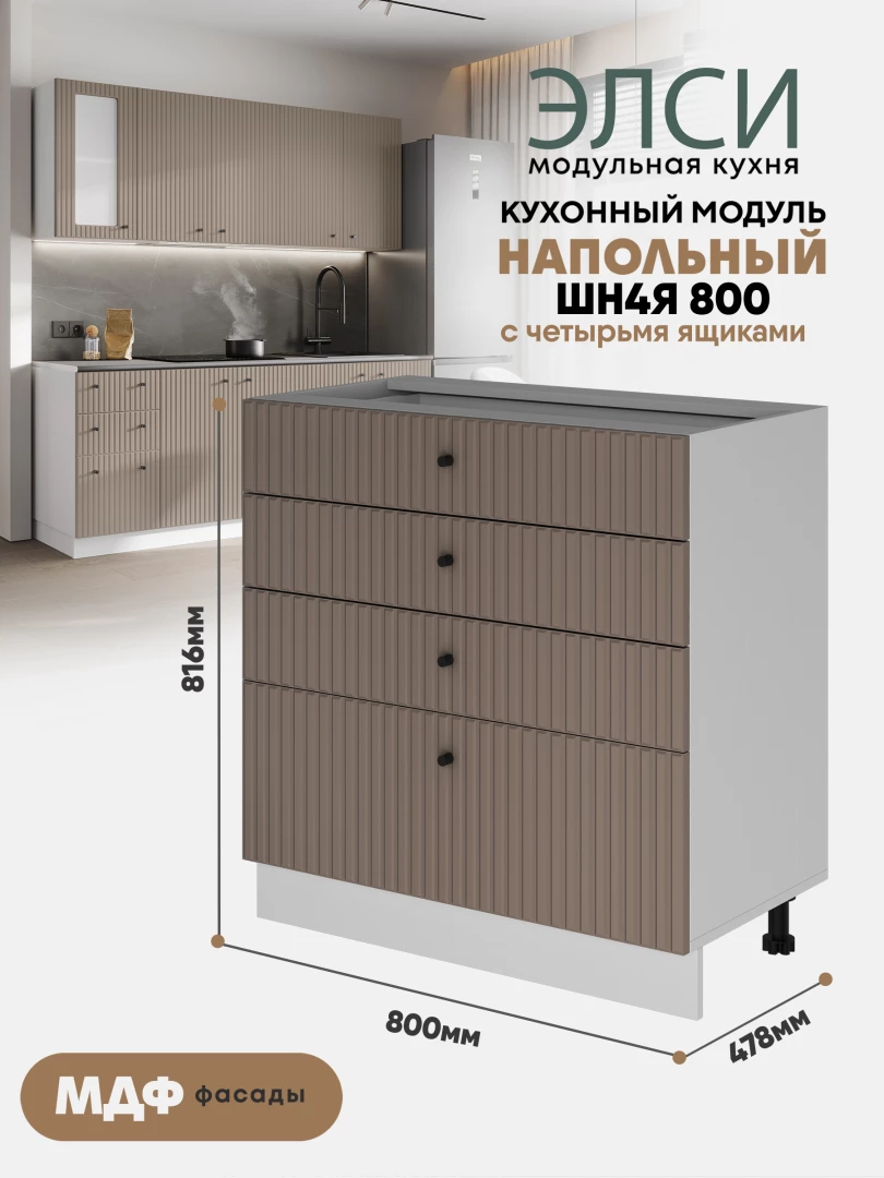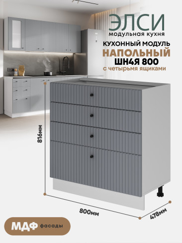 Кухонный напольный модуль с 4-мя ящиками "Элси" ШН4Я 800 Белый