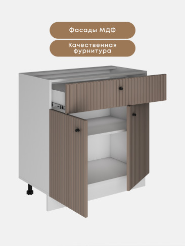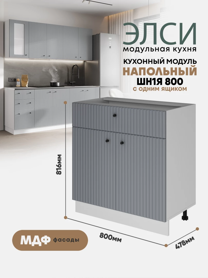 Рельефные фасады модульной кухни «Элси» называю микротрендом, у которого есть все шансы задержаться в моде не на один сезон. Дизайн фасадов с вертикальными полосками меняет восприятие пространства – визуально раздвигает, добавляет воздушности.