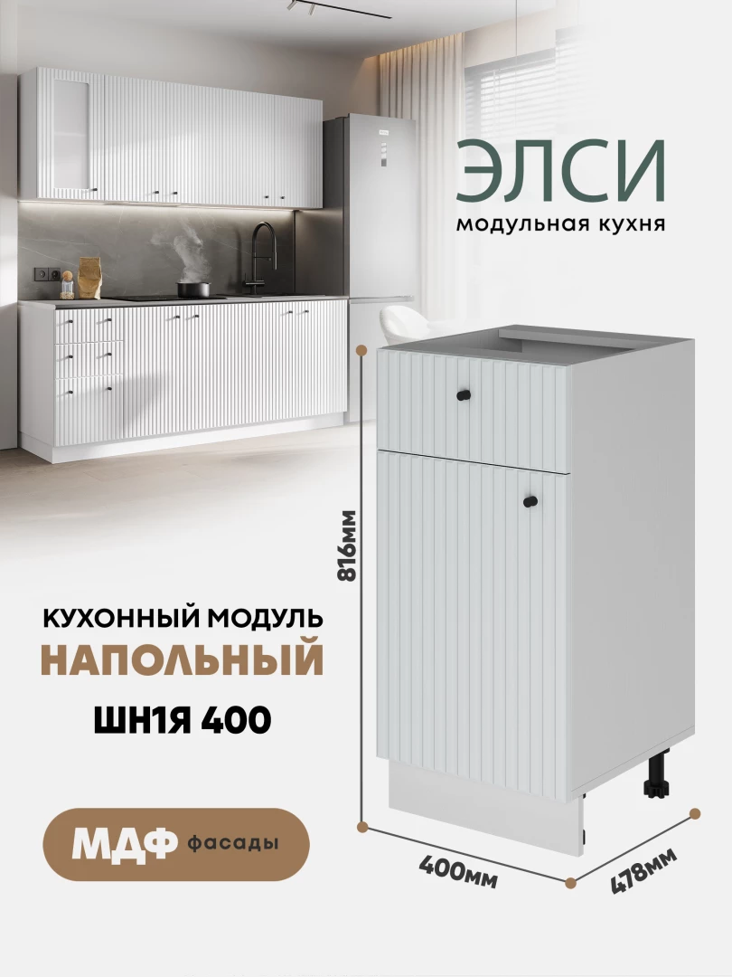 Кухонный напольный модуль с ящиком и створкой "Элси" ШН1Я 400 Белый