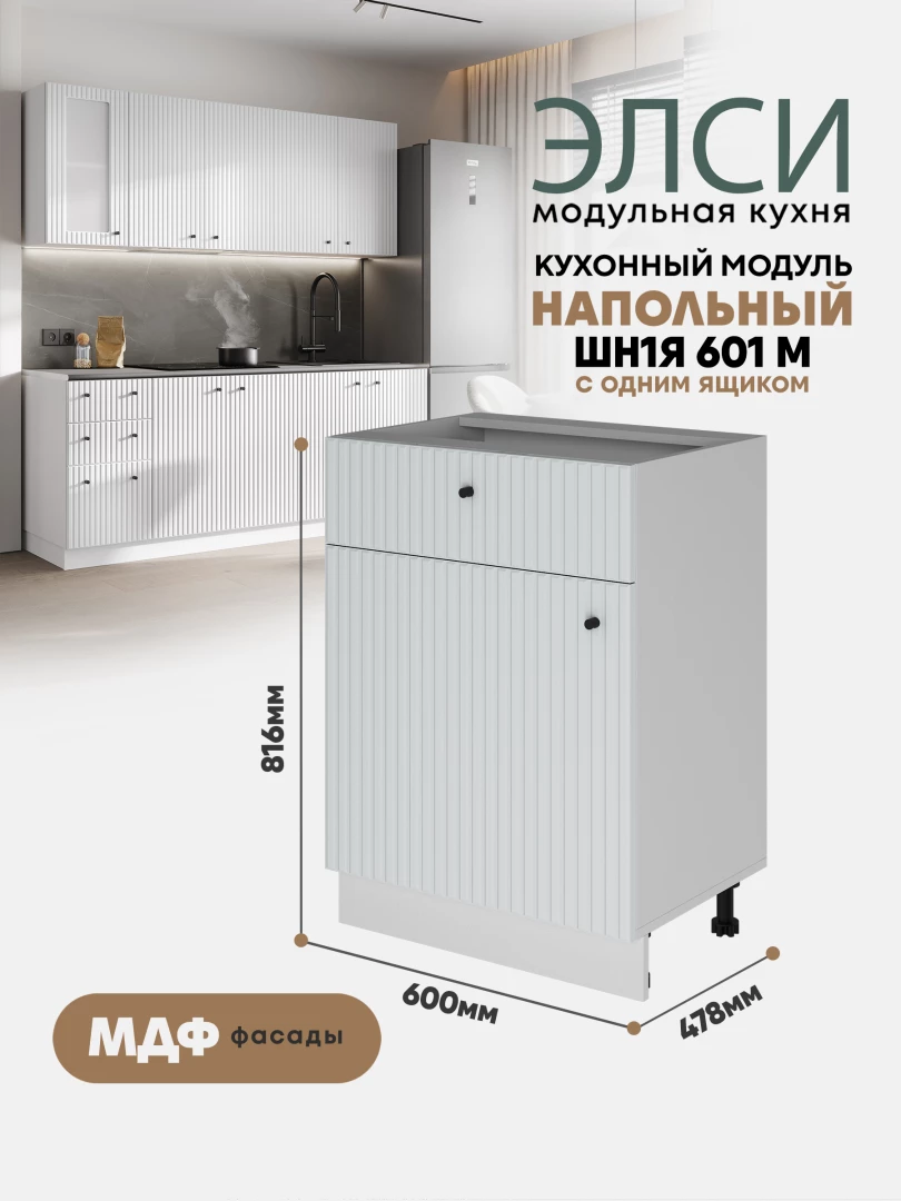 Кухонный напольный модуль с ящиком и створкой "Элси" ШН1Я 601М Белый