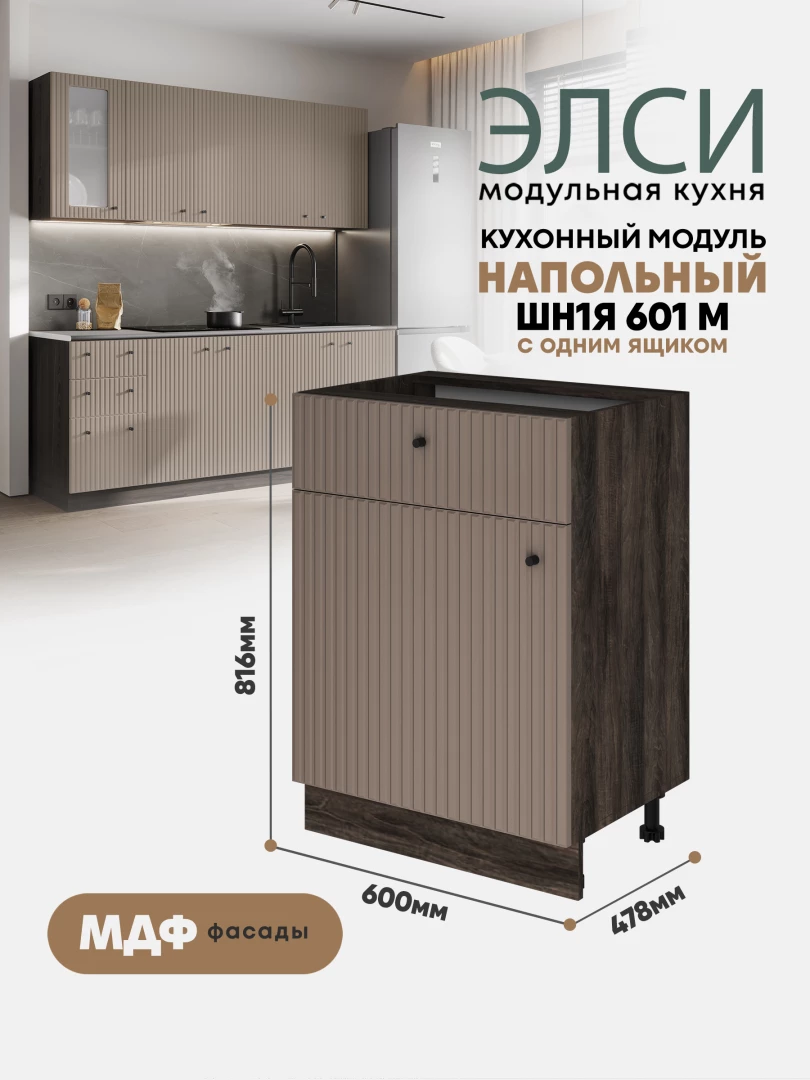 Кухонный напольный модуль с ящиком и створкой "Элси" ШН1Я 601М Ликата