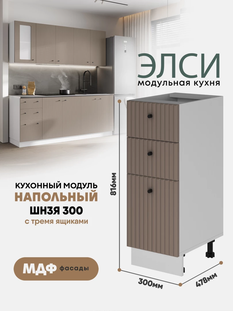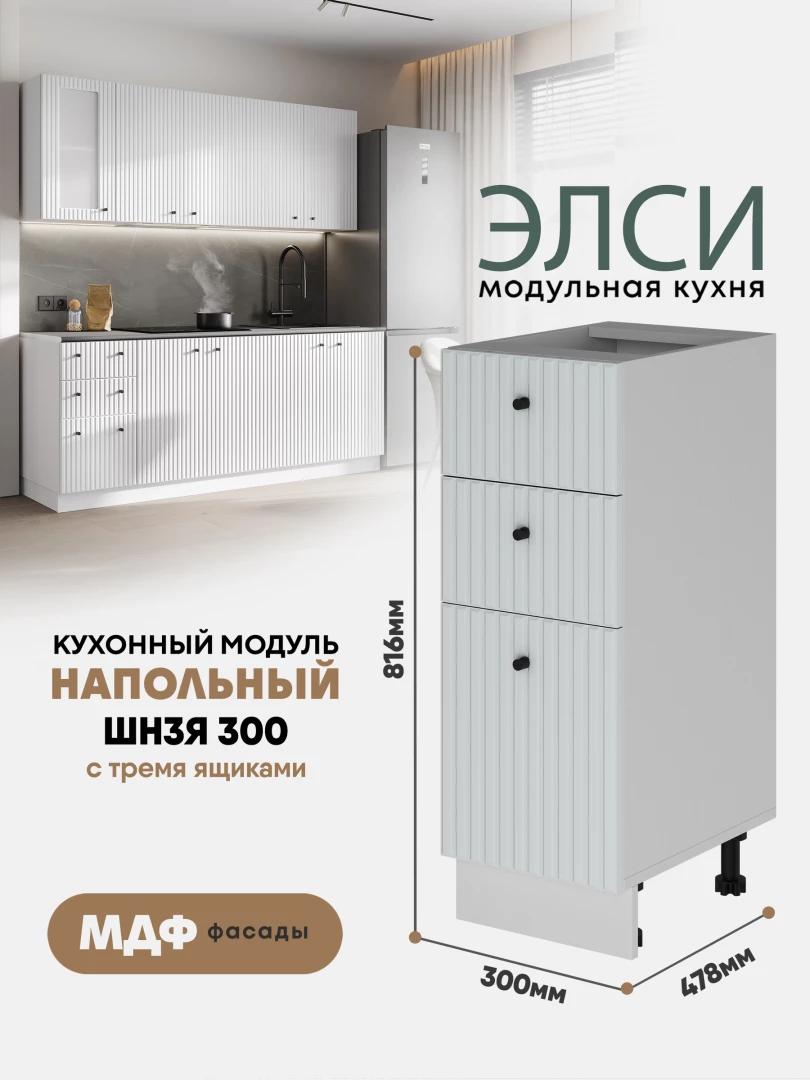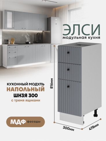 Кухонный напольный модуль с тремя ящиками "Элси" ШН3Я 300 Белый