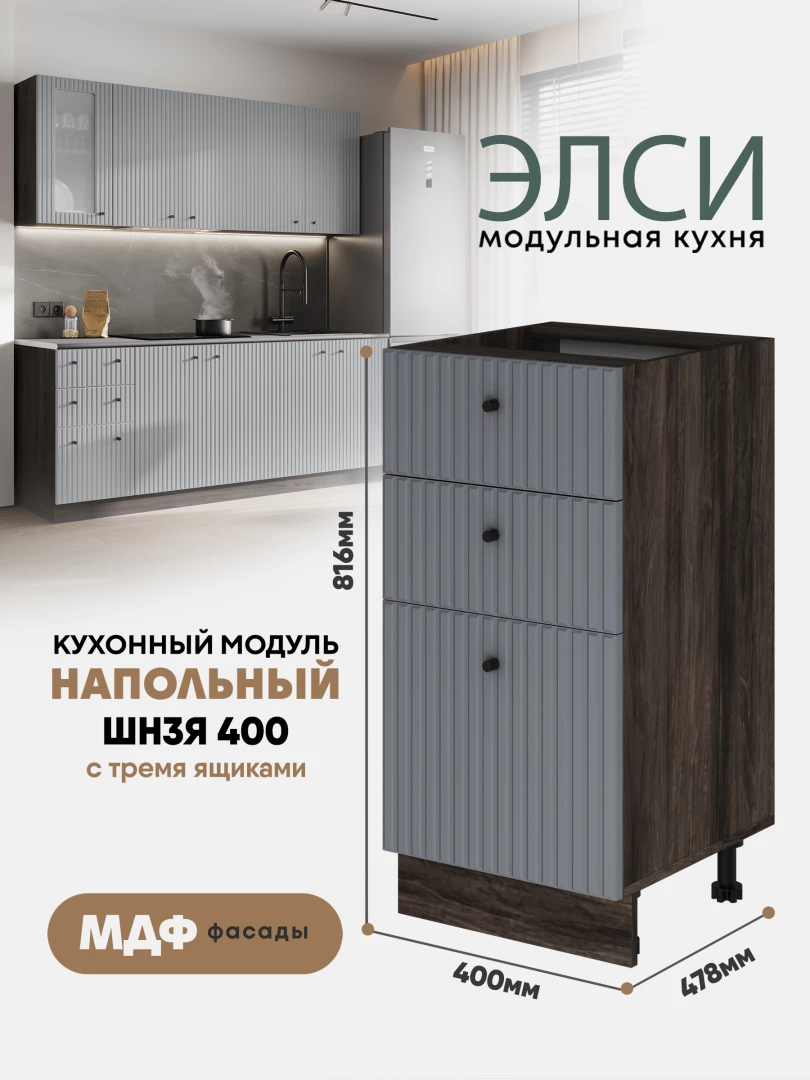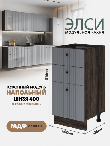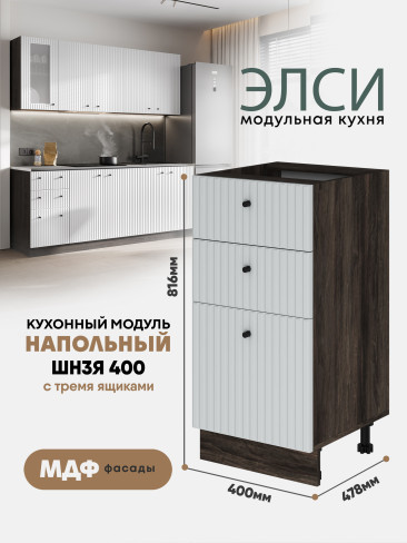 Кухонный напольный модуль с тремя ящиками "Элси" ШН3Я 400 Ликата