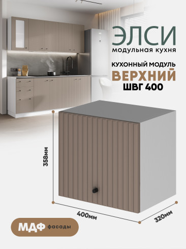 Кухонный навесной модуль (антресоль) "Элси" ШВГ 400 Белый