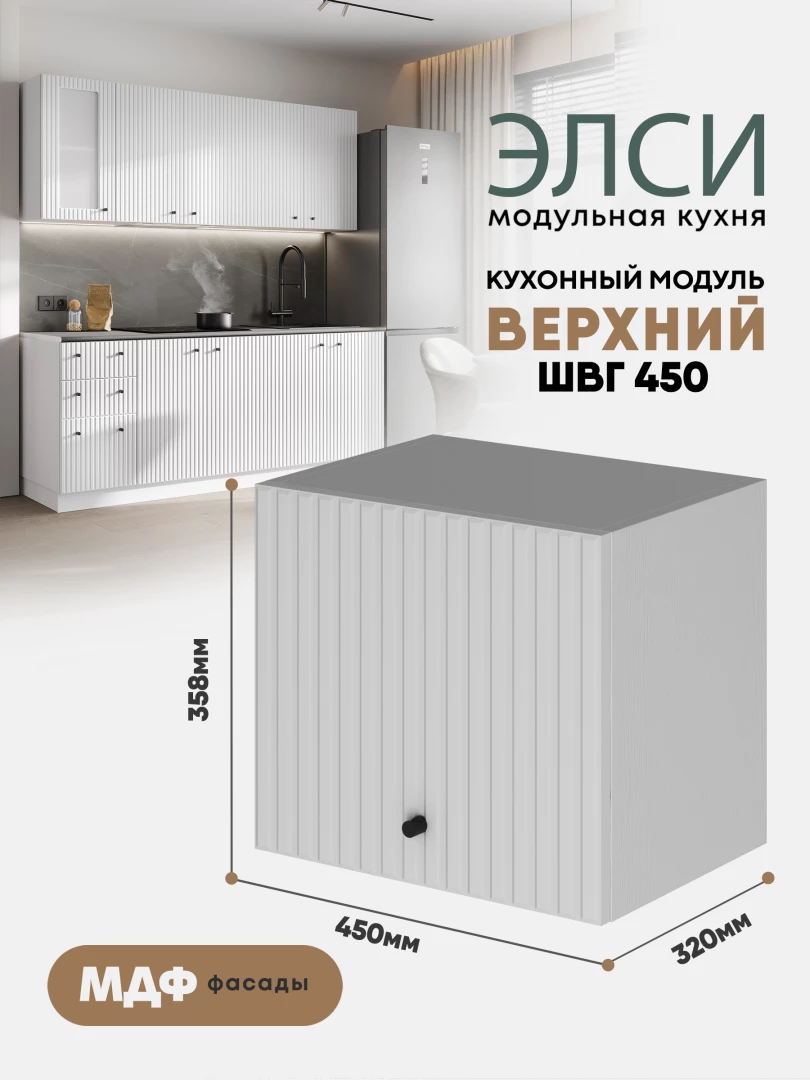 Кухонный навесной модуль (антресоль) "Элси" ШВГ 450 Белый