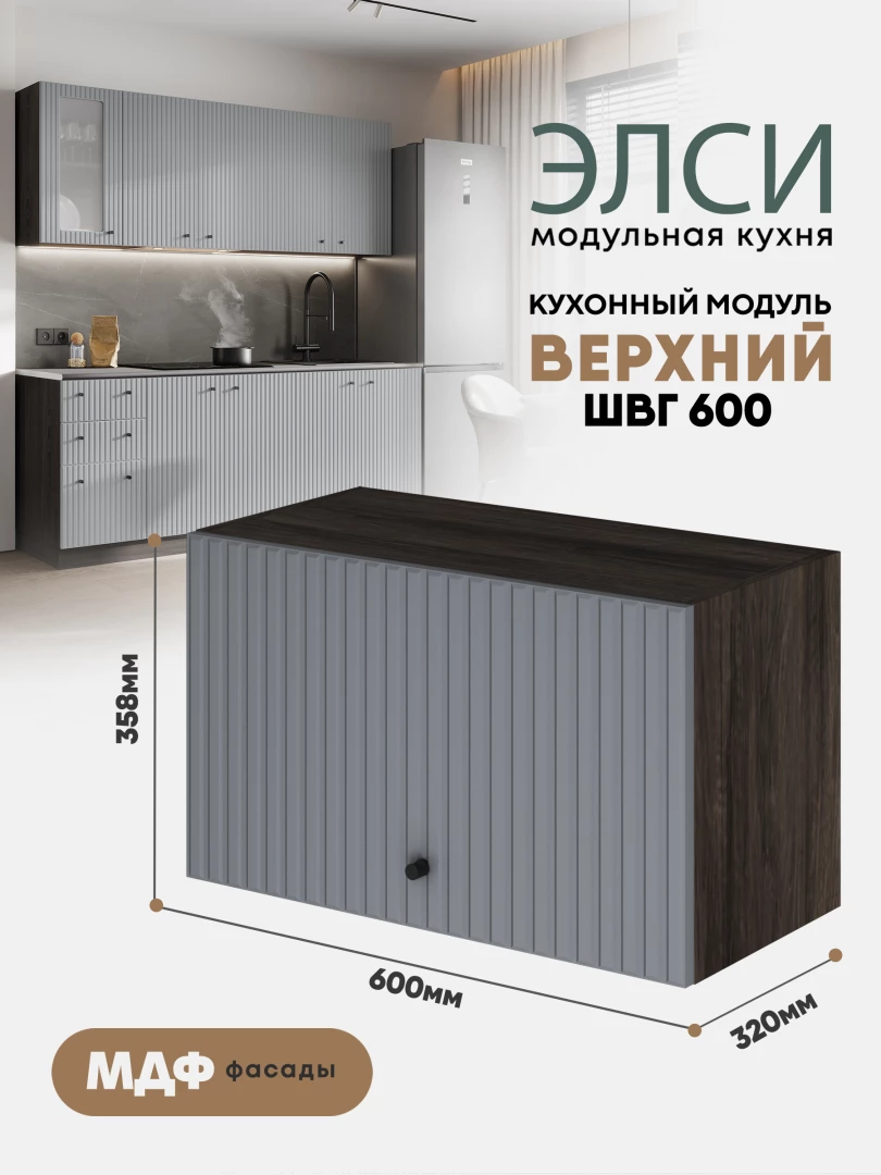 Кухонный навесной модуль (антресоль) "Элси" ШВГ 600 Ликата