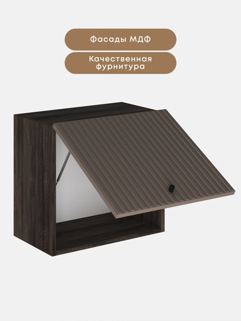 Рельефные фасады модульной кухни «Элси» называю микротрендом, у которого есть все шансы задержаться в моде не на один сезон. Дизайн фасадов с вертикальными полосками меняет восприятие пространства – визуально раздвигает, добавляет воздушности.